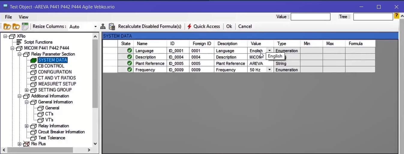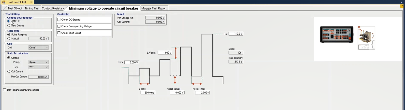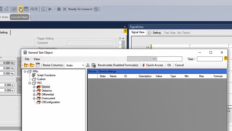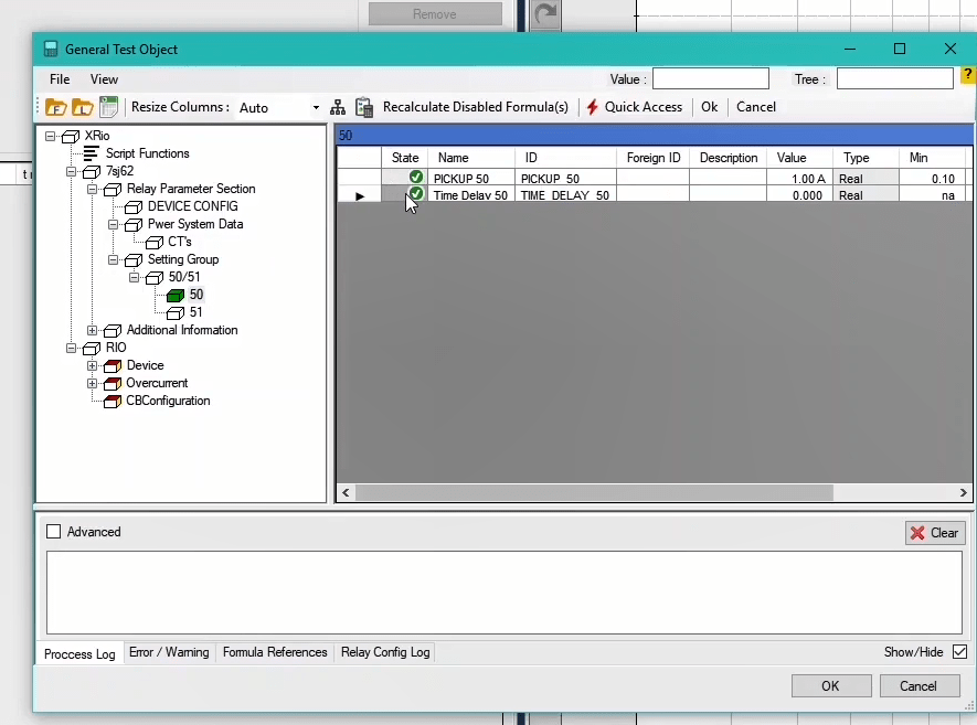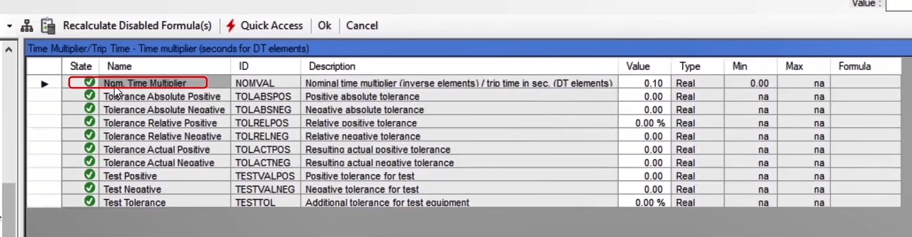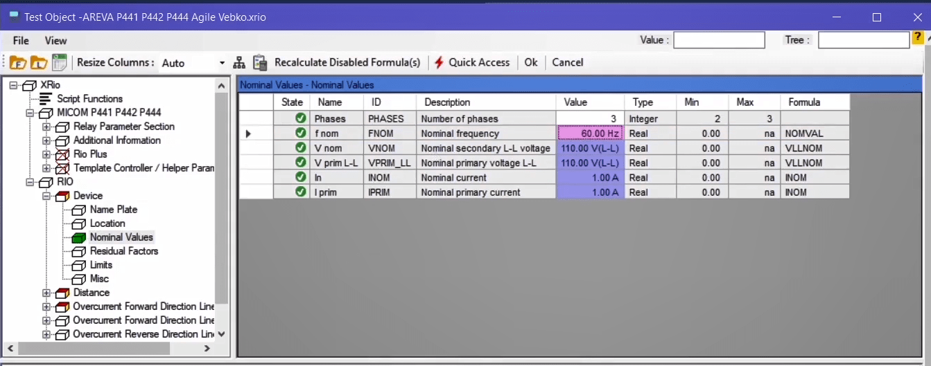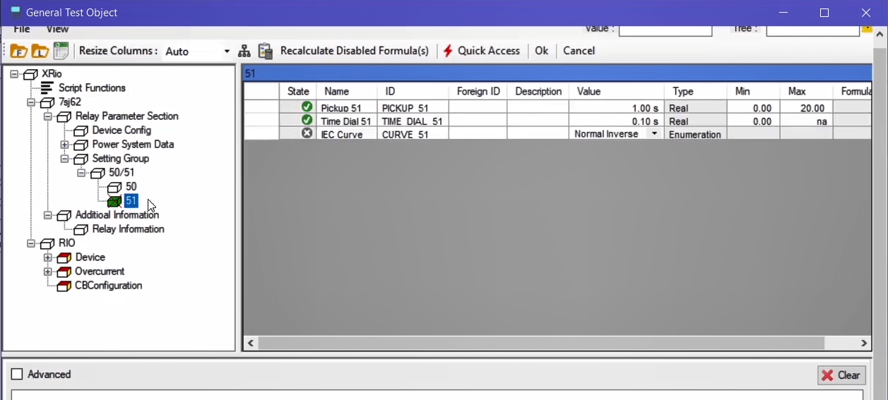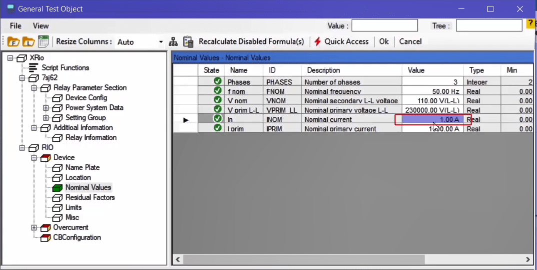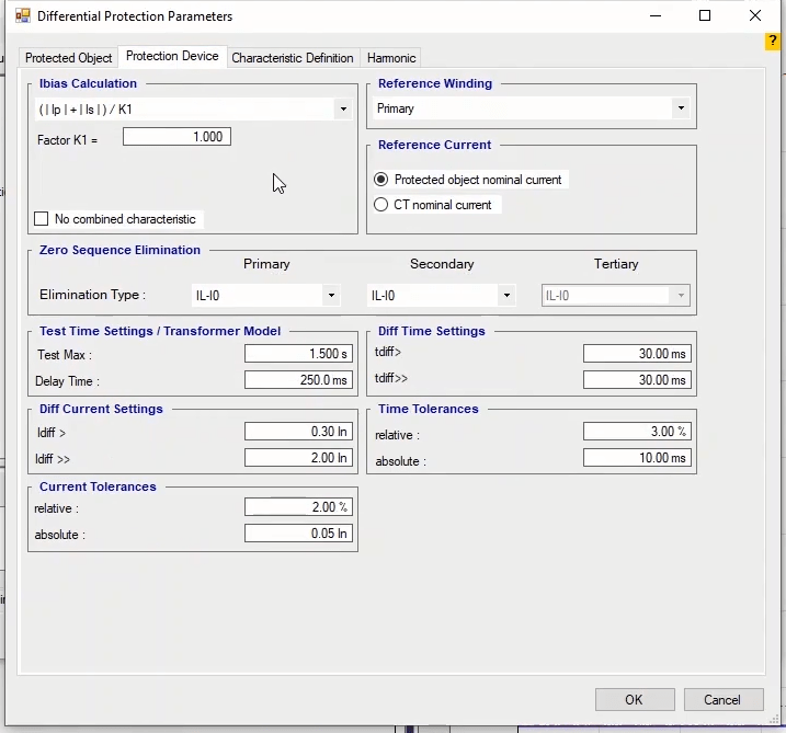 To perform this test three states ones including PreFault, Fault and PostFault are required. PreFault time is suitable for 500 milliseconds, fault time should be greater than the maximum trip time, and Post Fault time is at least 500 milliseconds. PostFault time should be increased if the drop-off is not instantaneous.