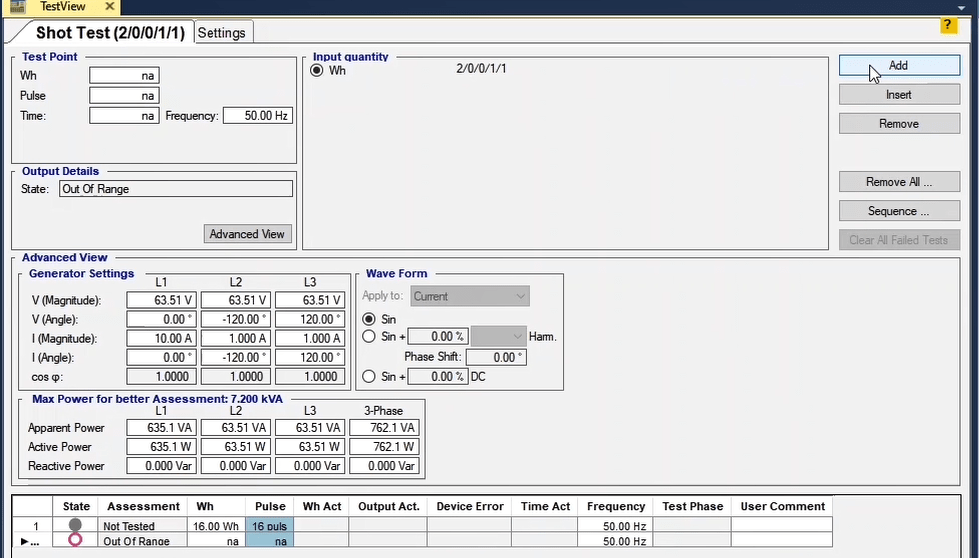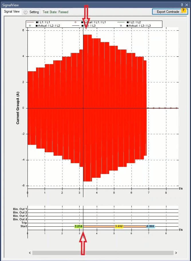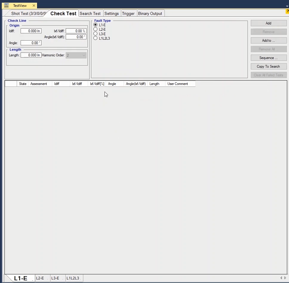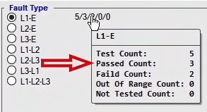 In the second step, the Check Test will be performed to calculate the performance and Inactivity on both sides of the characteristic, based on the time of the shots performed. This test is performed in fault types L1-E, L2-L3 and L1L2L3.