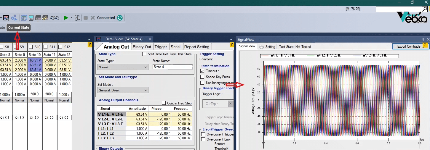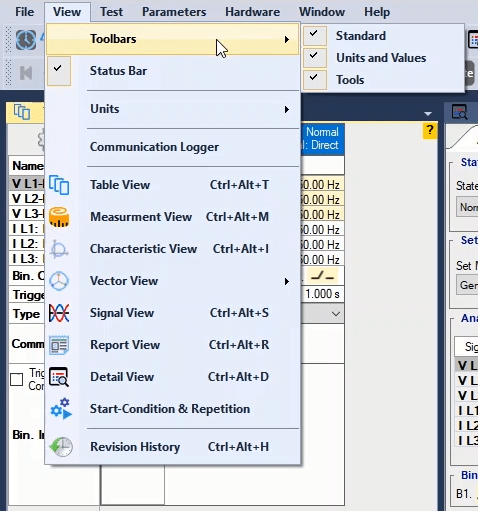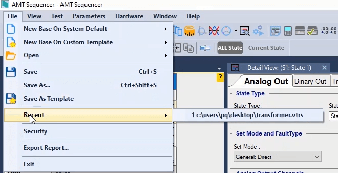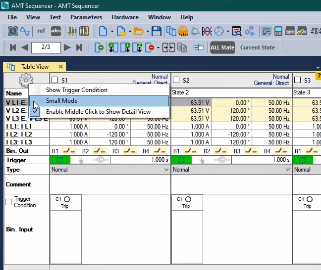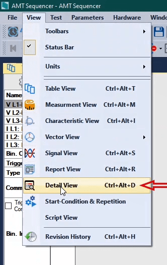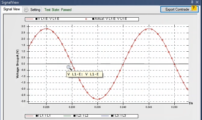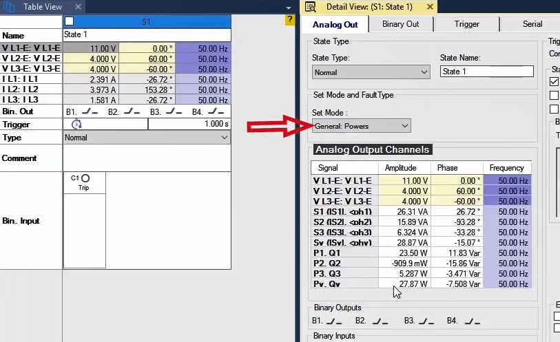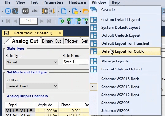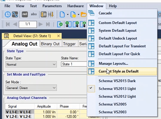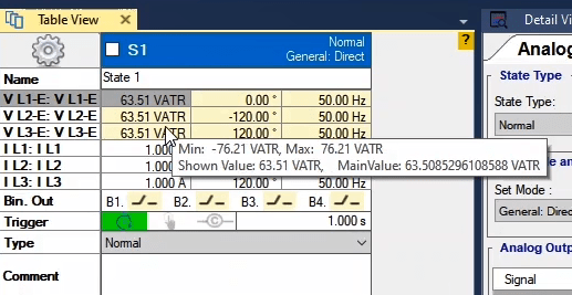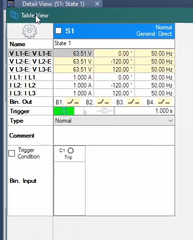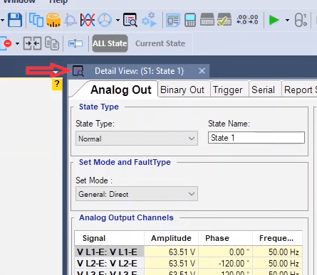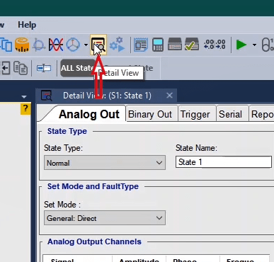 The third state will also be activated as post-Fault with zero voltage and current for 500 milliseconds. In order to see better performance of the function, from the View menu, the Detail View window opens.