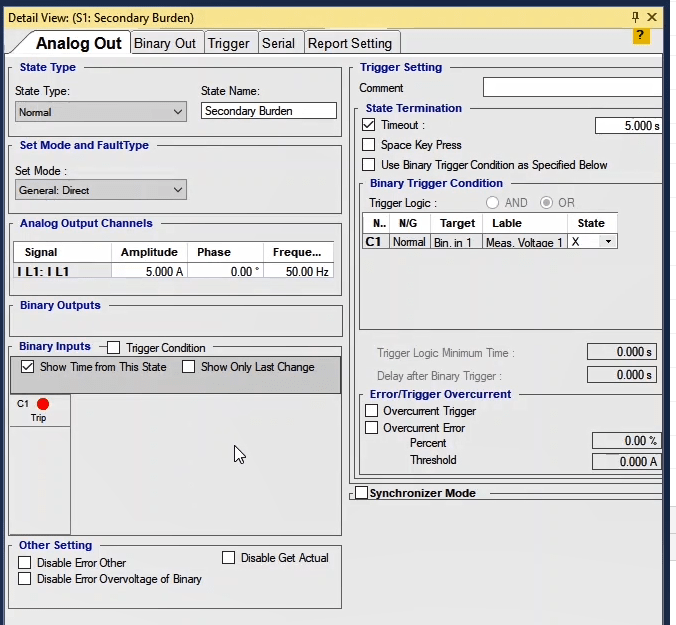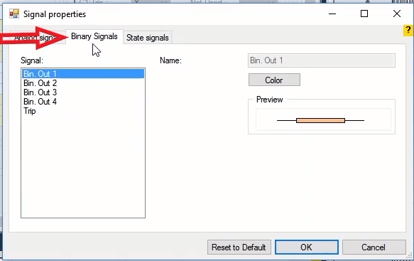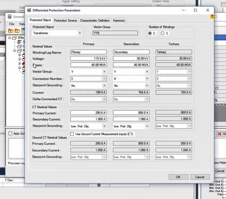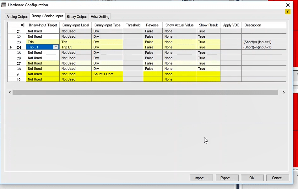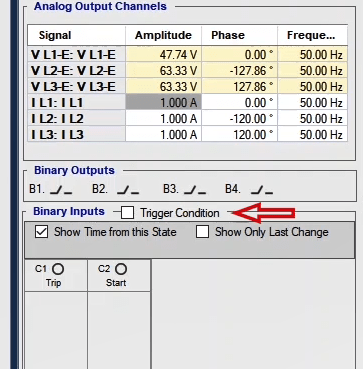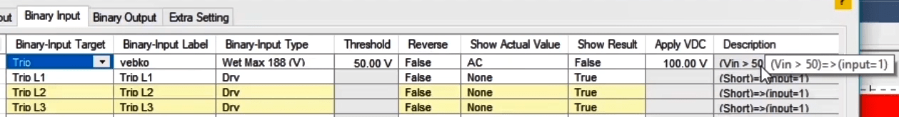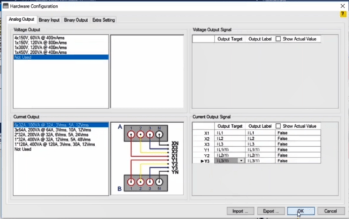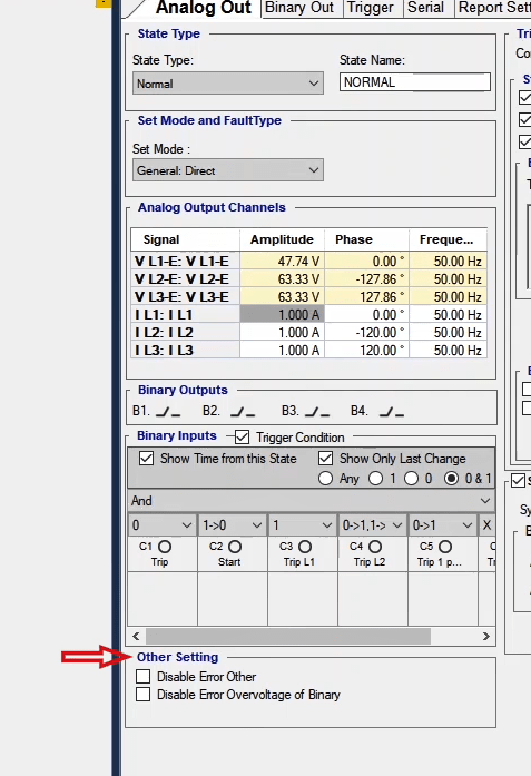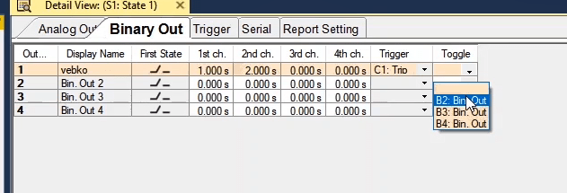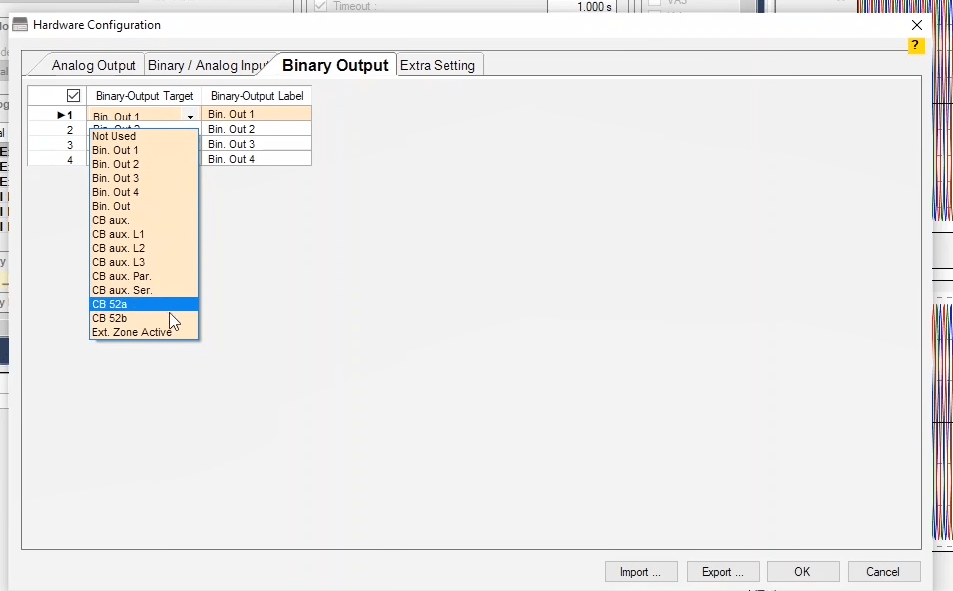 In the next step, you need to set the configurations for Binary Inputs. Here, Trip A and Trip B are selected to record the relay performance against Trip Zones 1 and 2, respectively. Then, it is time for Binary Output to be configured. Clicking OK will save the settings.