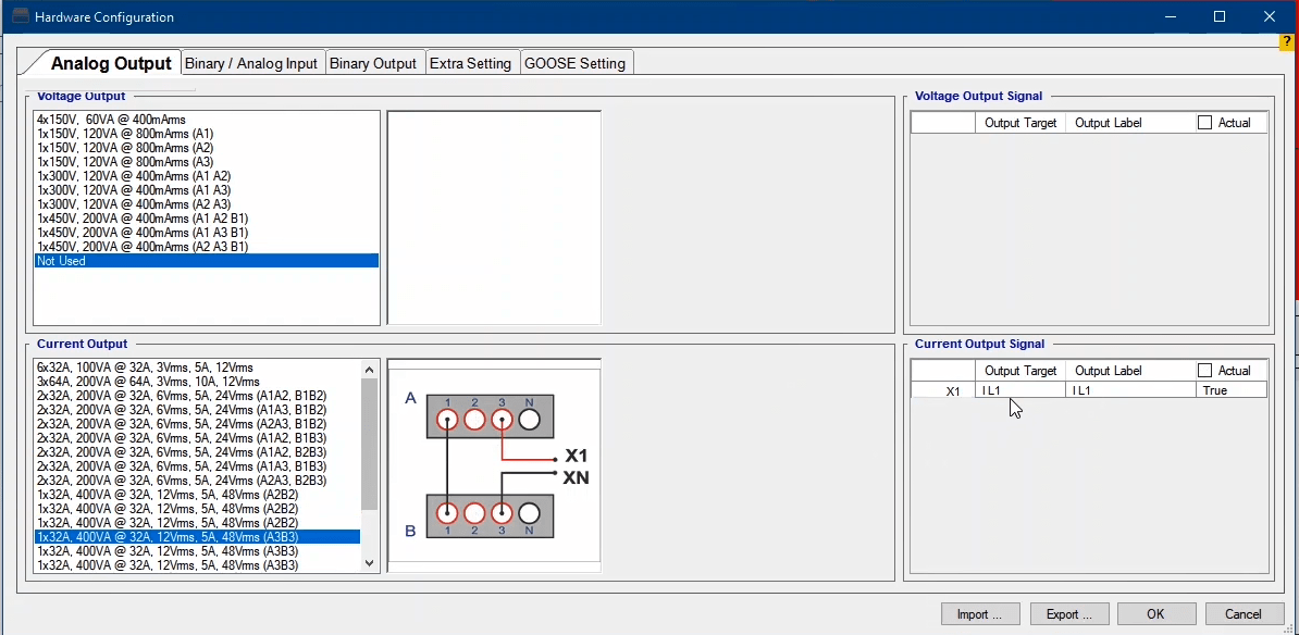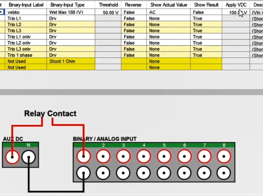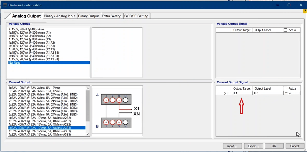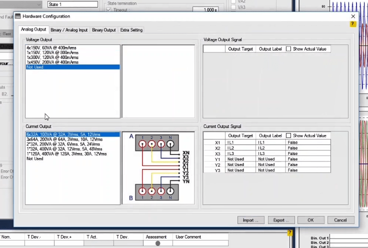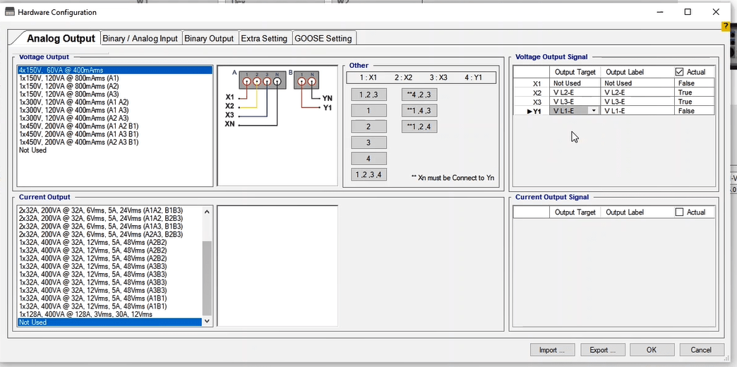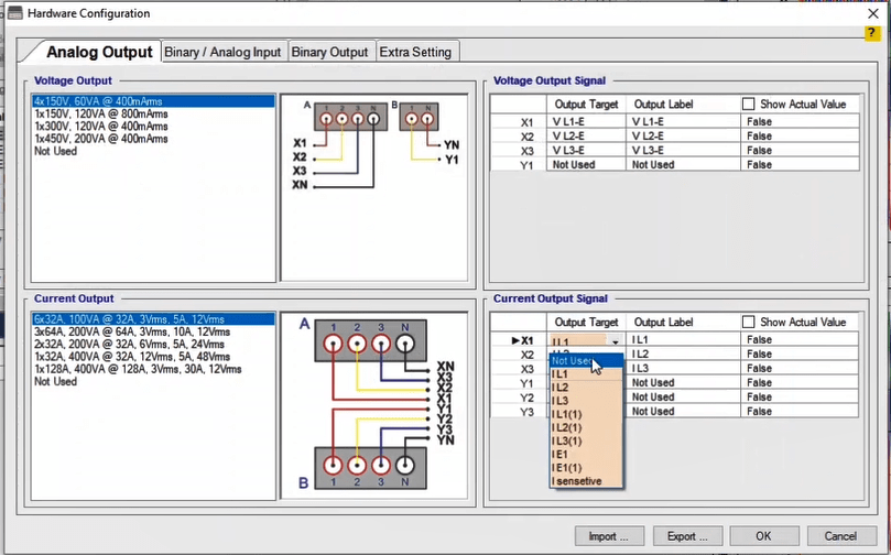 In the next step, you need to set the configurations for Binary Inputs. Here, Trip A and Trip B are selected to record the relay performance against Trip Zones 1 and 2, respectively. Then, it is time for Binary Output to be configured. Clicking OK will save the settings.