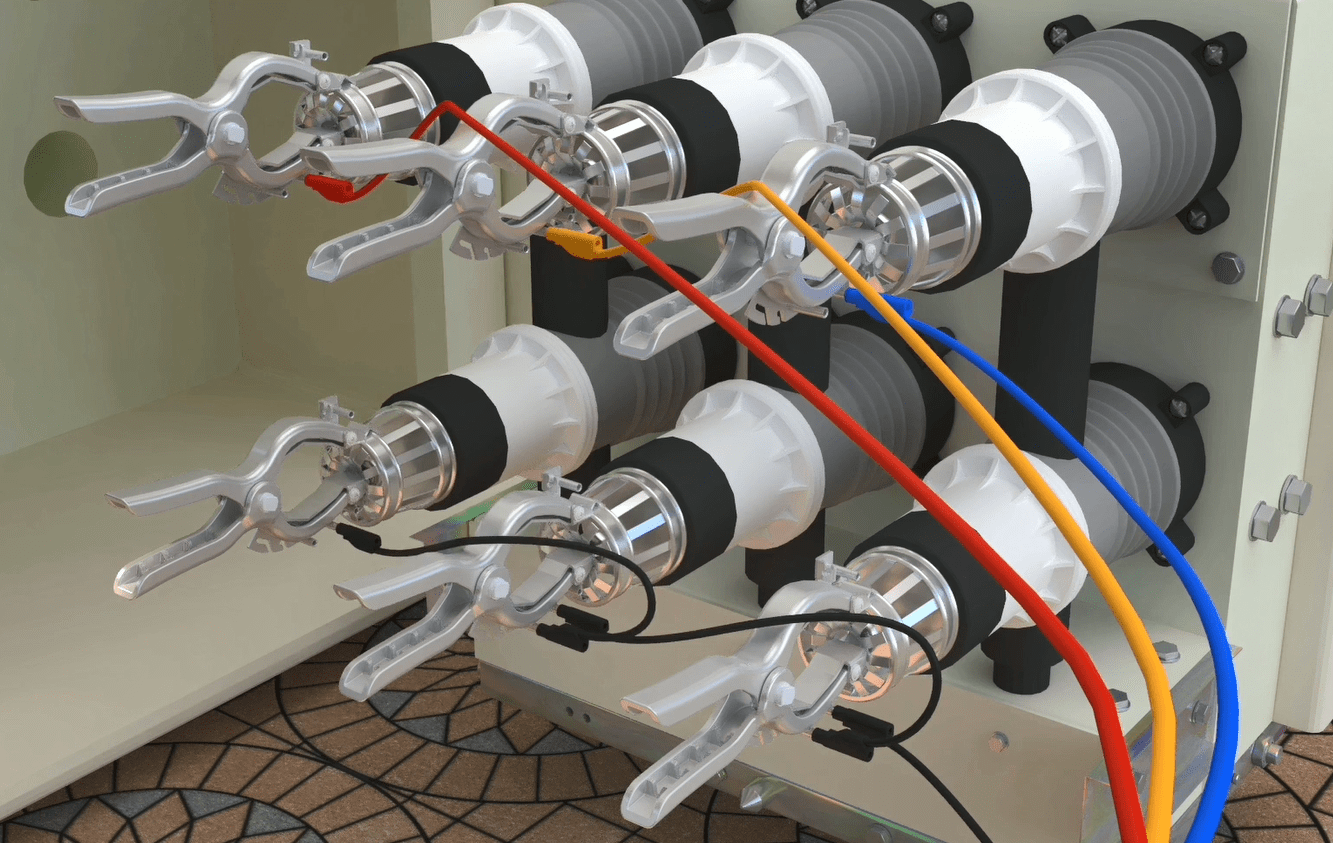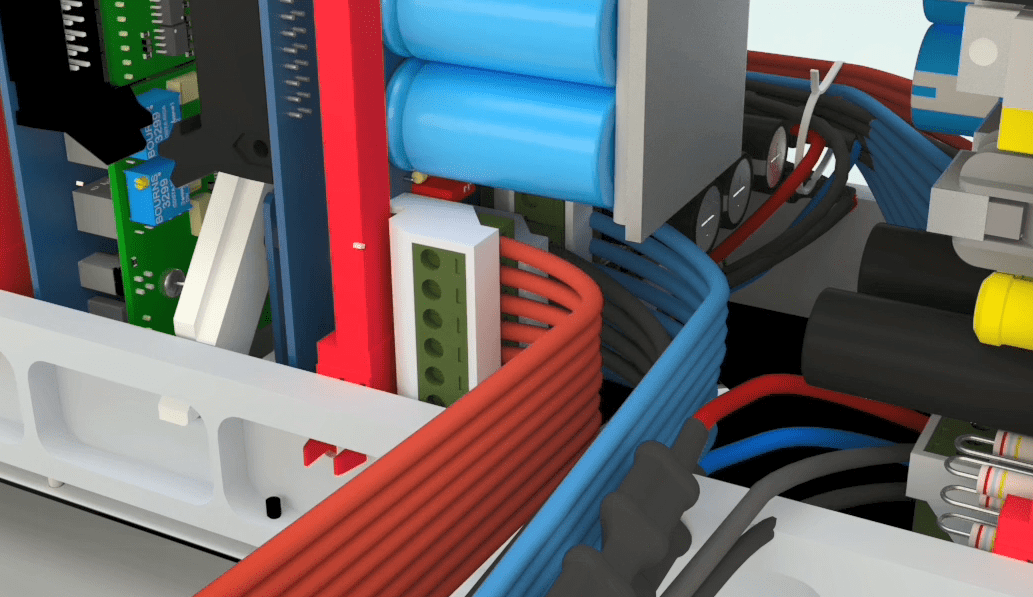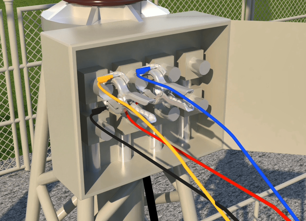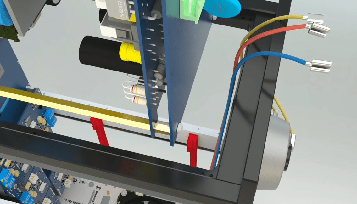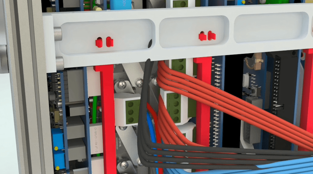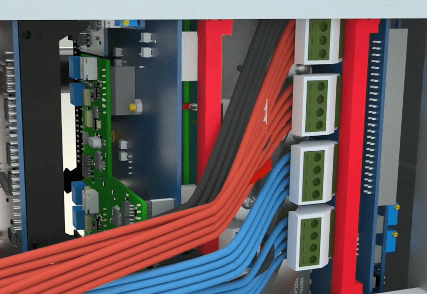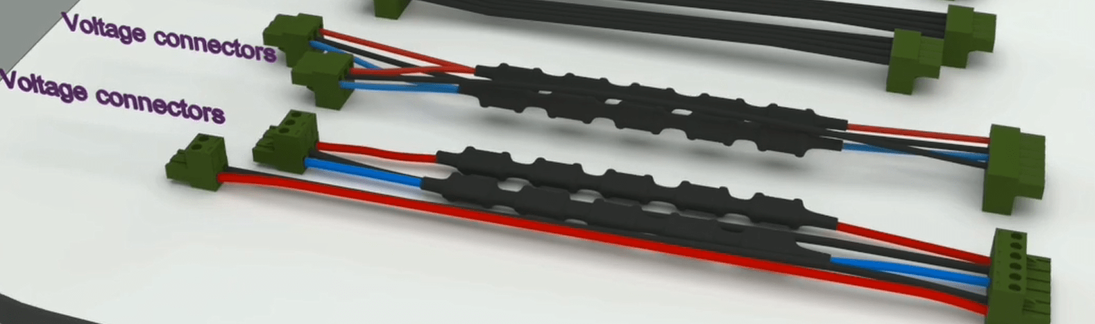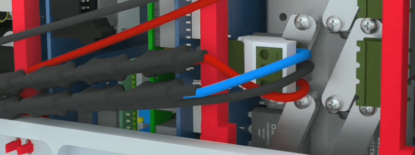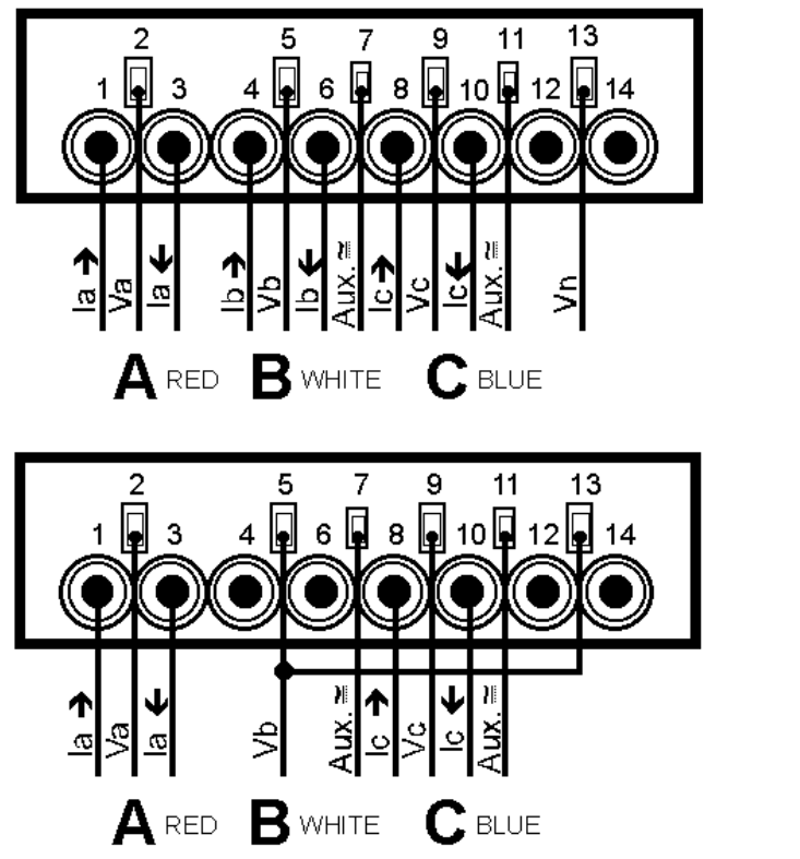 Connect the 4 pin female Phoenix with longer red wire holder to the second male Phoenix from the top. Connect the 4 pin female Phoenix with a shorter red wire holder to the third male Phoenix from the top. Then assemble all the current and voltage wires with a cable tie wrap.