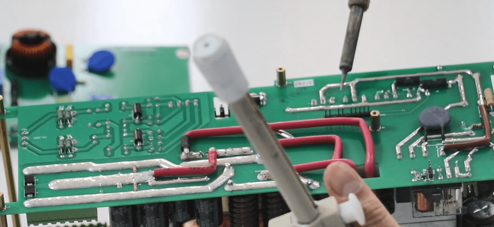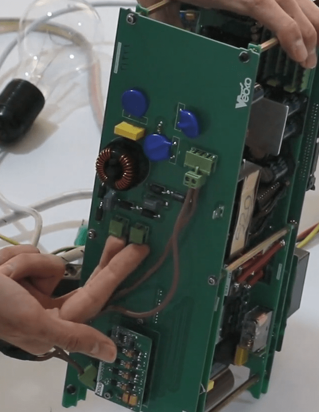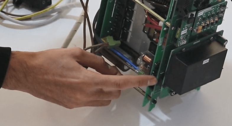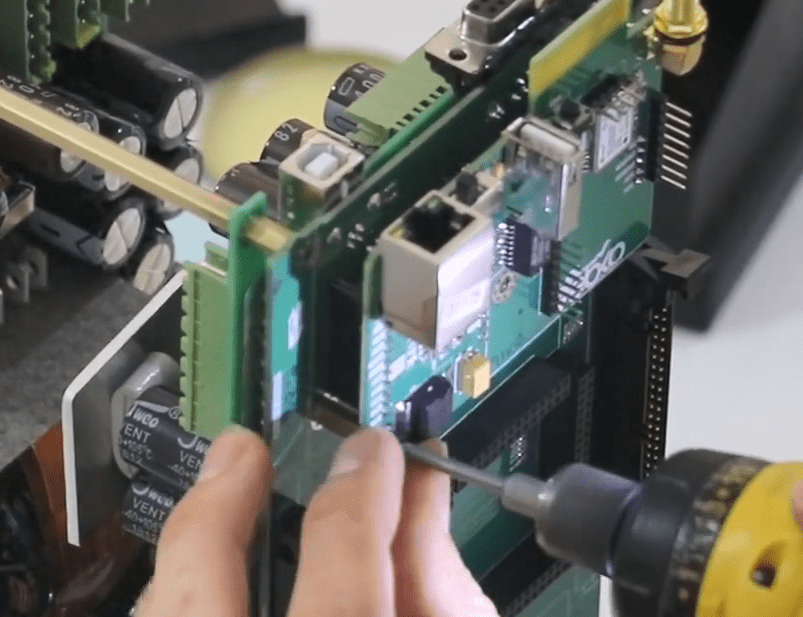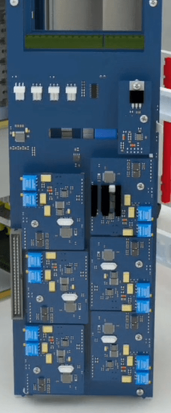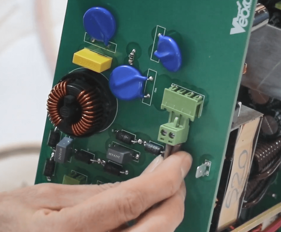 First, put a holder on the 8 pin current Phoenix (blue wire) and connect the internal 8 pin Phoenix to the incomplete switching board.