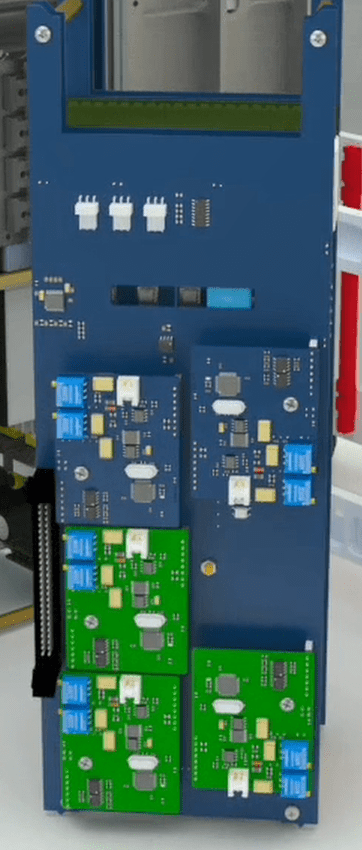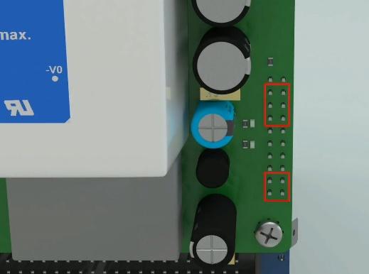 Put a holder on the 4 pin current Phoenix (black wire) and connect it to the incomplete switching board. Connect the 4 pin black male Phoenix to the first male Phoenix from the top.