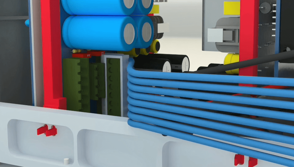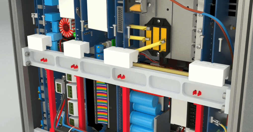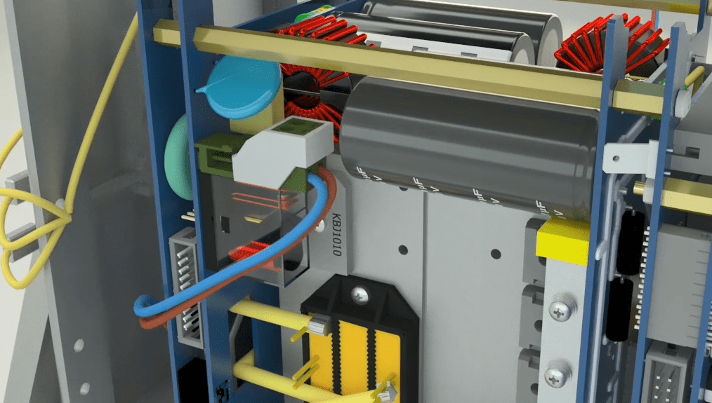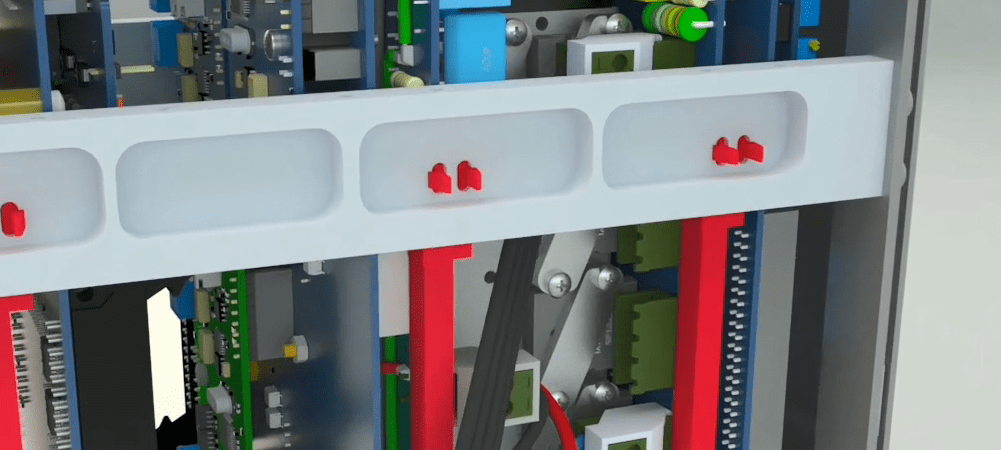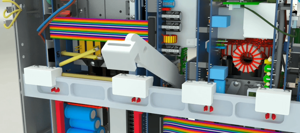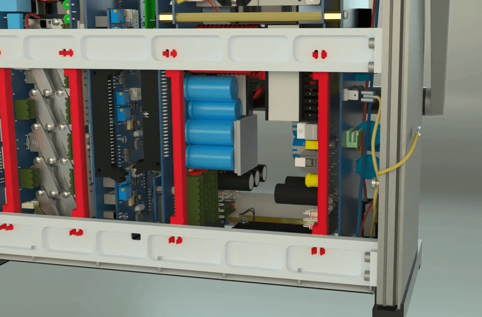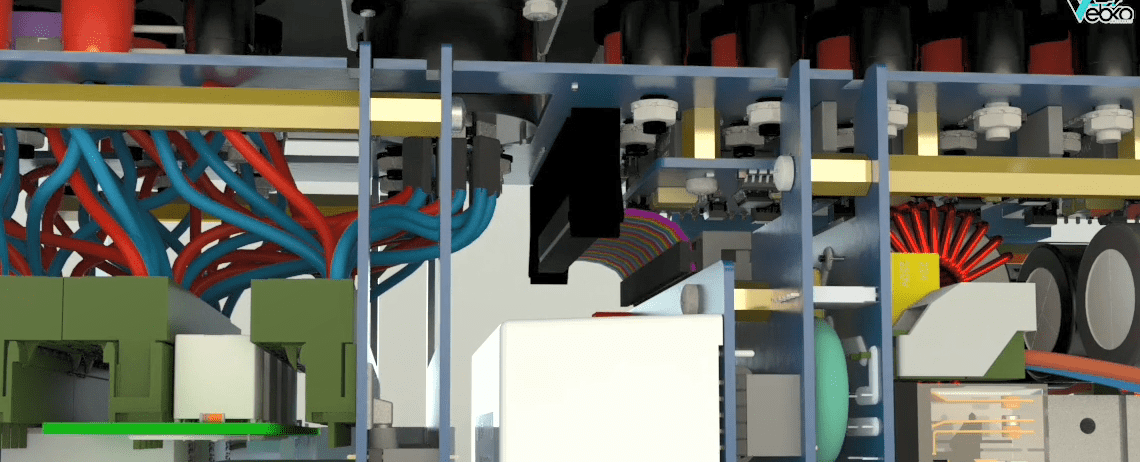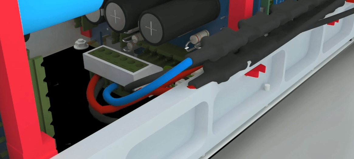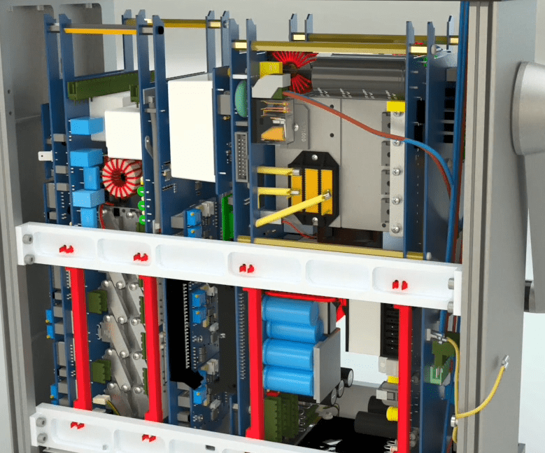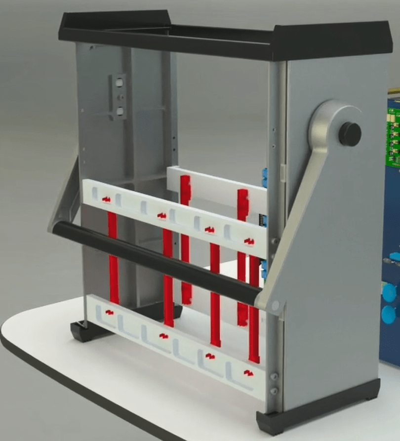 Open the 4 holders on the middle rail using allen wrench 2 and then go to the other side of the device and seprate the 2 earth cables from the device and release the holder related to the flat at the bottom of the device on the right side using a screwdriver. Seprate the other side that has a latch by releasing the latch from the device.
