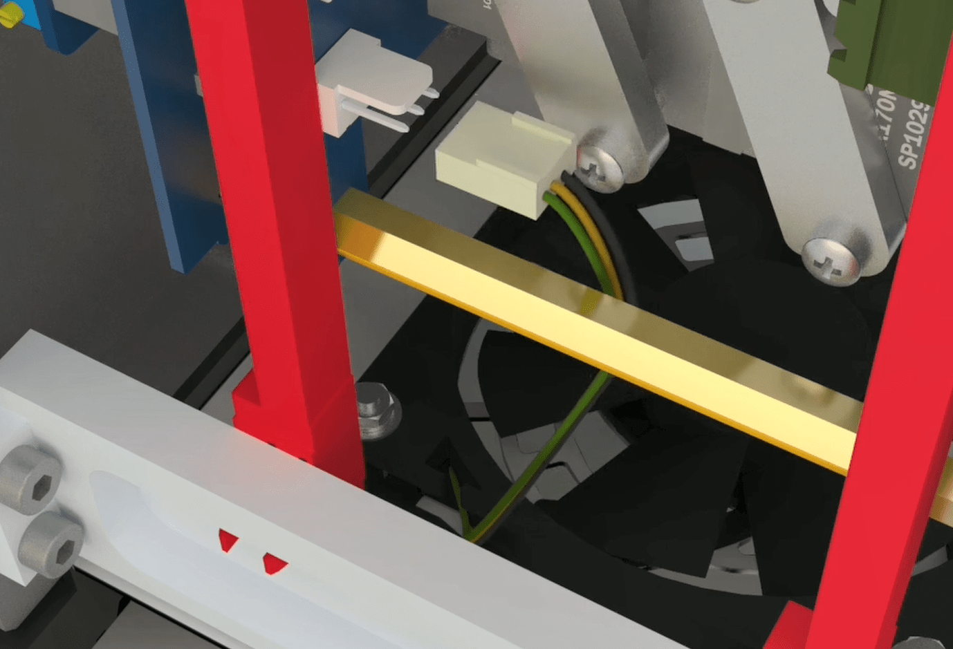Note: make sure that the fan wire is not under any modules or inside the fan.