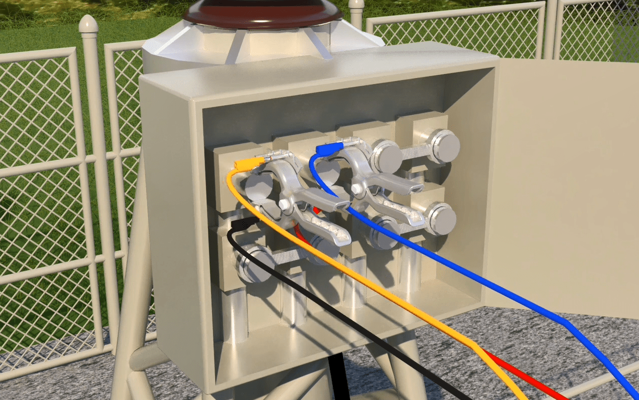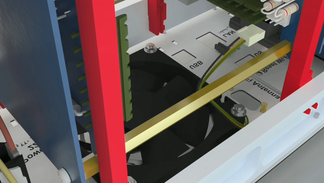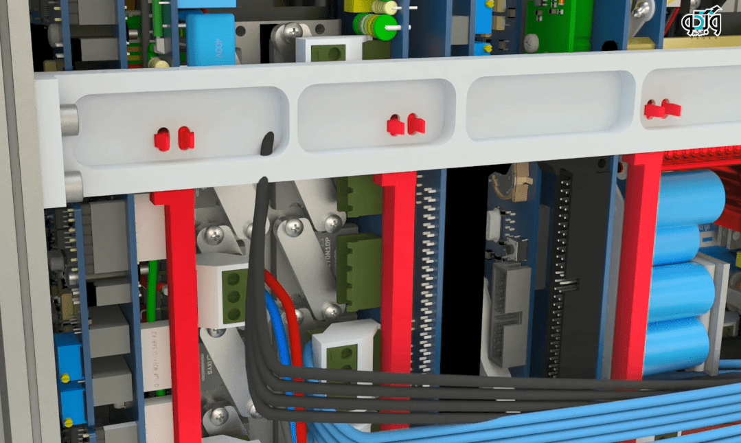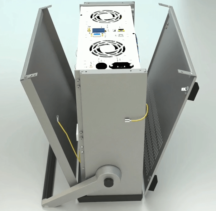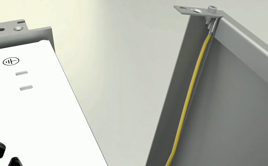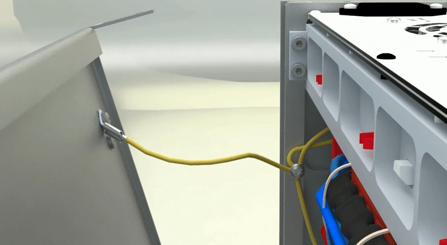 On both sides of the case, two long earth wires have been attached to the body. Connect each side to its door, pull the wire a little with a small force to make sure that they are tight and steady.