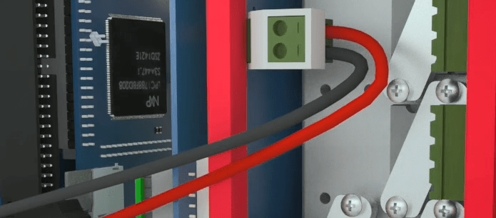 In the end, connect the 8 pin red Phoenix wire with its holder to the complete switching module.
