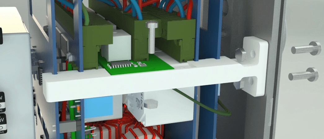 The holder is placed half way on the 6 pin Phoenix voltage connectors. Connecting the voltage 6 pin Phoenix on which the holder is placed to the switching and put the holder in place.