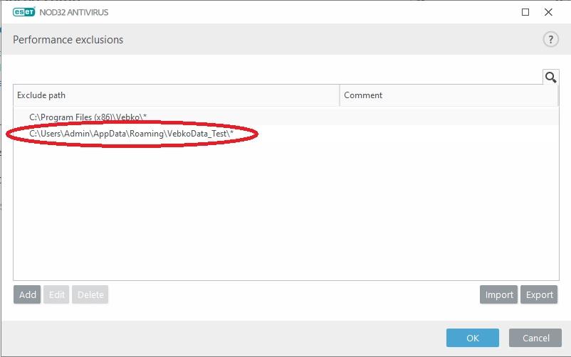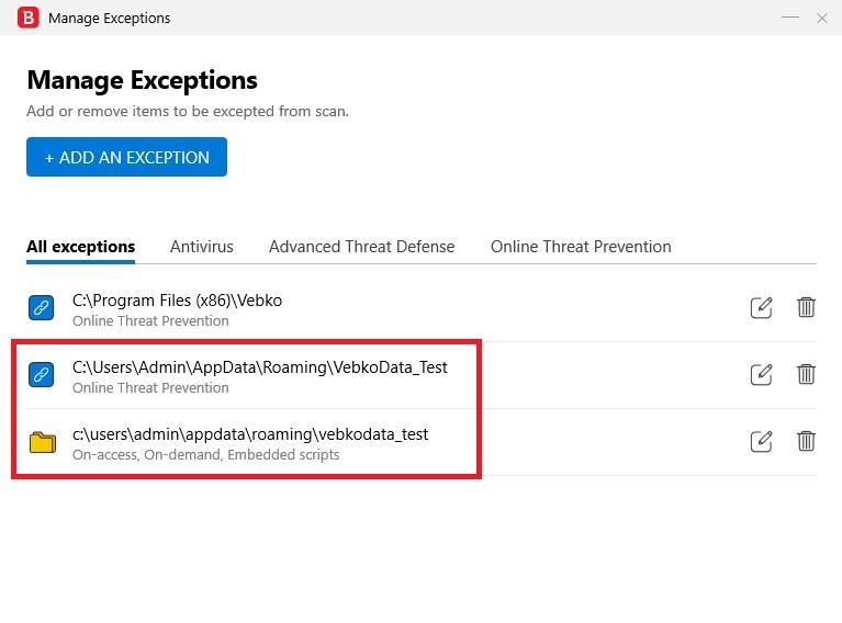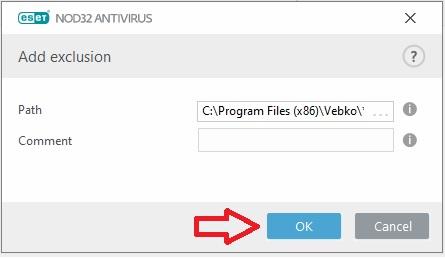 In this section, by selecting vebko folder and selecting ok option as well as selecting Add Exception option, the declared path is recorded.