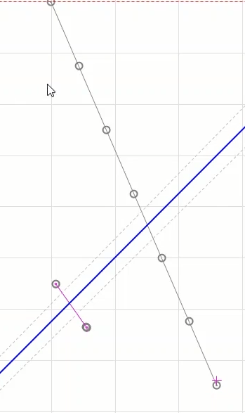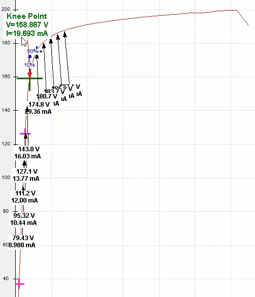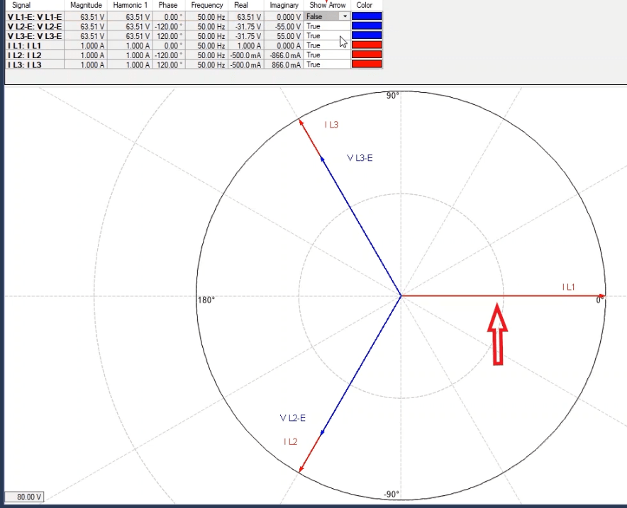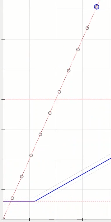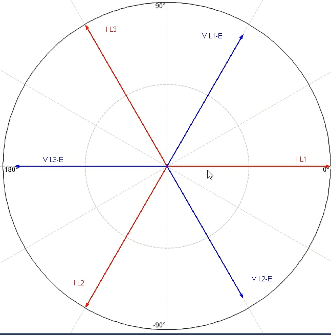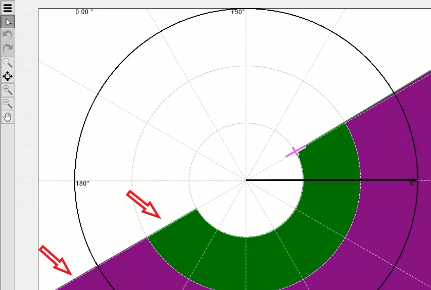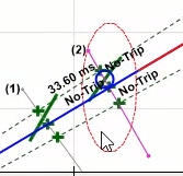 After adding double points and four times the regulatory current at the best possible angle in terms of performance of the function i.e. -45 degrees for the L1E-L2E-L3E falt types, a point in the No Trip area (here at an angle of 135 degrees) is tested.