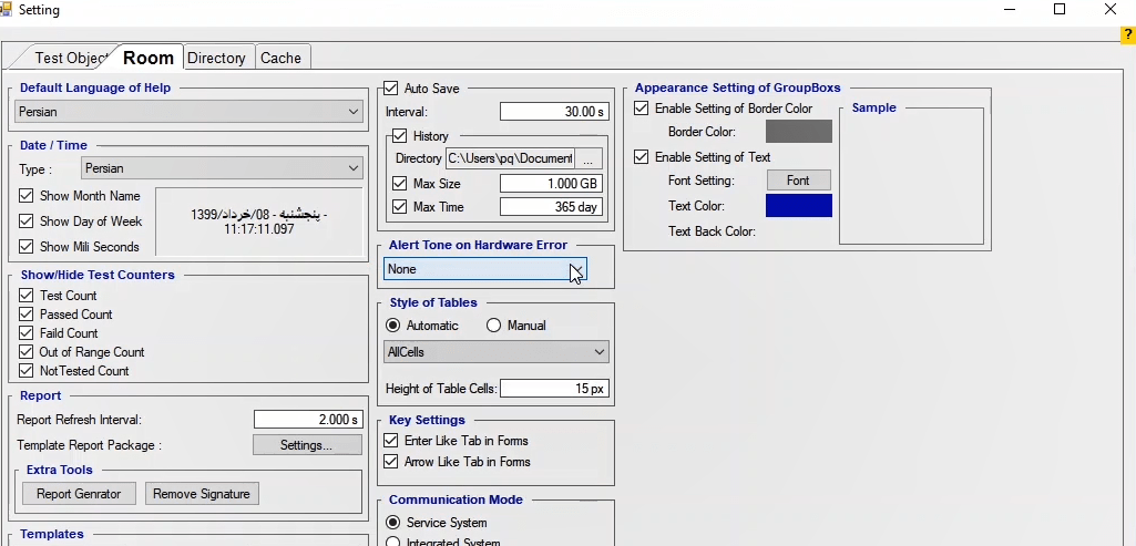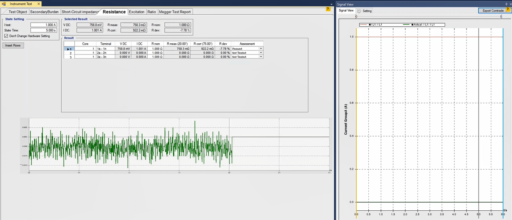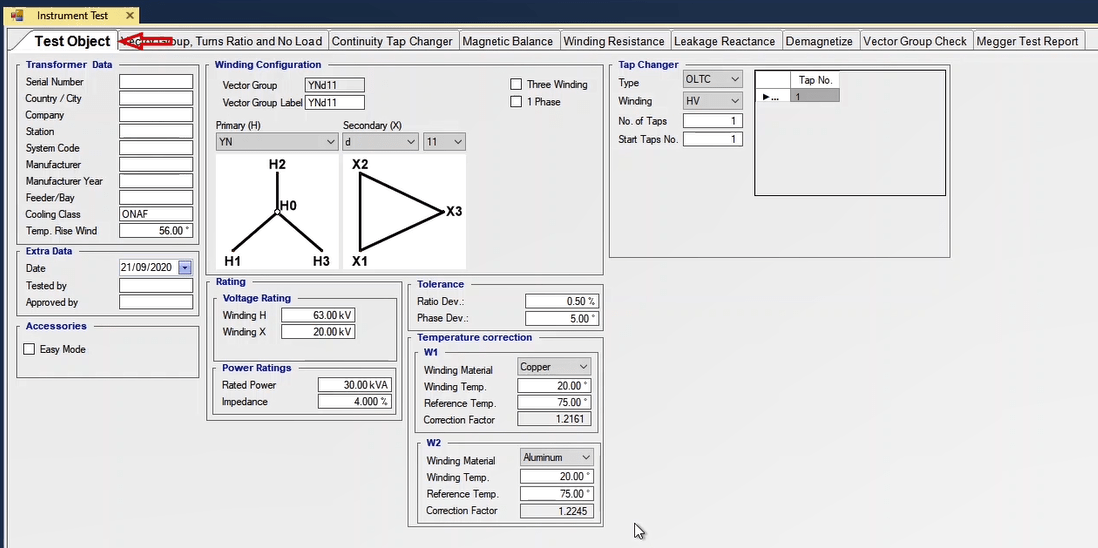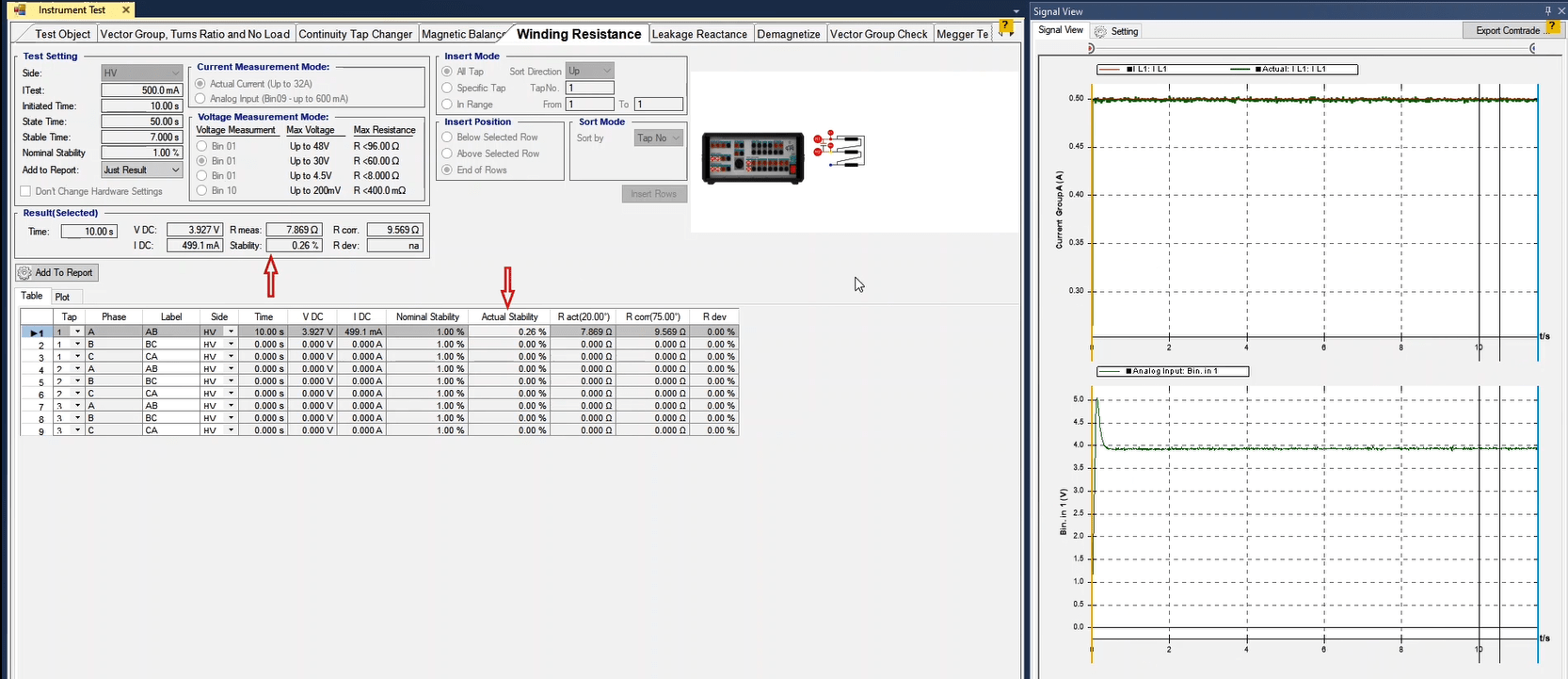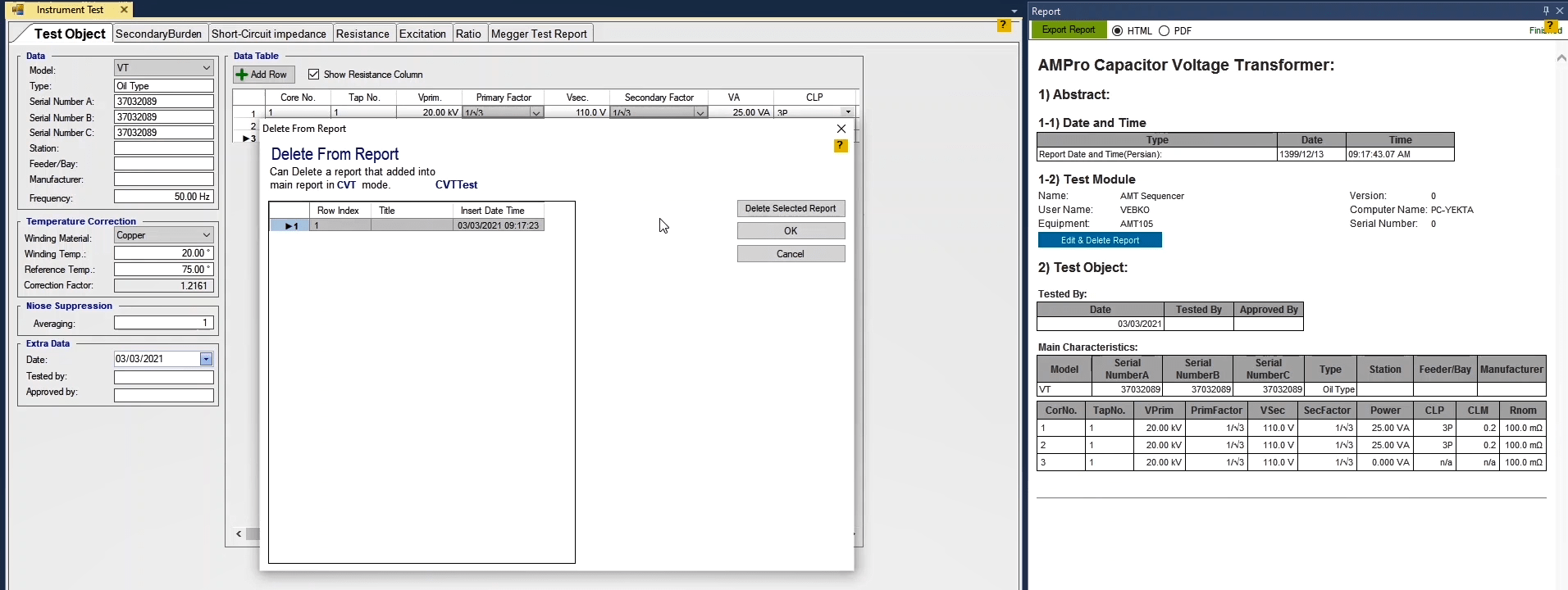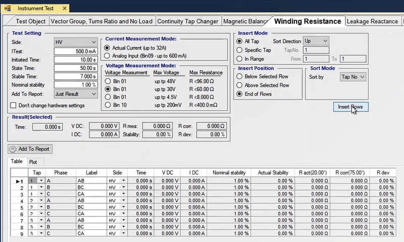 Another function test, is available from AMT Differential's Room Stability tab. In this section, considering Idiff=0, you can specify the bias value as a coefficient against the nominal current to check the trans stability in this case. This test is performed in all fault types. When the test is finished, you can specify the elements in the report and save the output in different formats such as PDF.