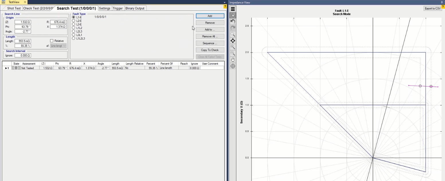 By performing of this test, the results of the studies will once again be visible. In the final step, search test is performed with the aim of searching the curve, detecting and evaluating the real range of each distance relay zones. For this purpose, search line should be selected in line with the R, X, angle of the line and the location of the collision of the sides.