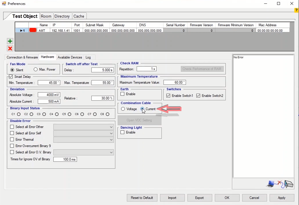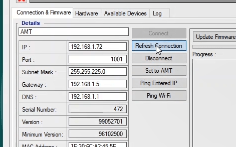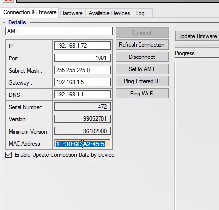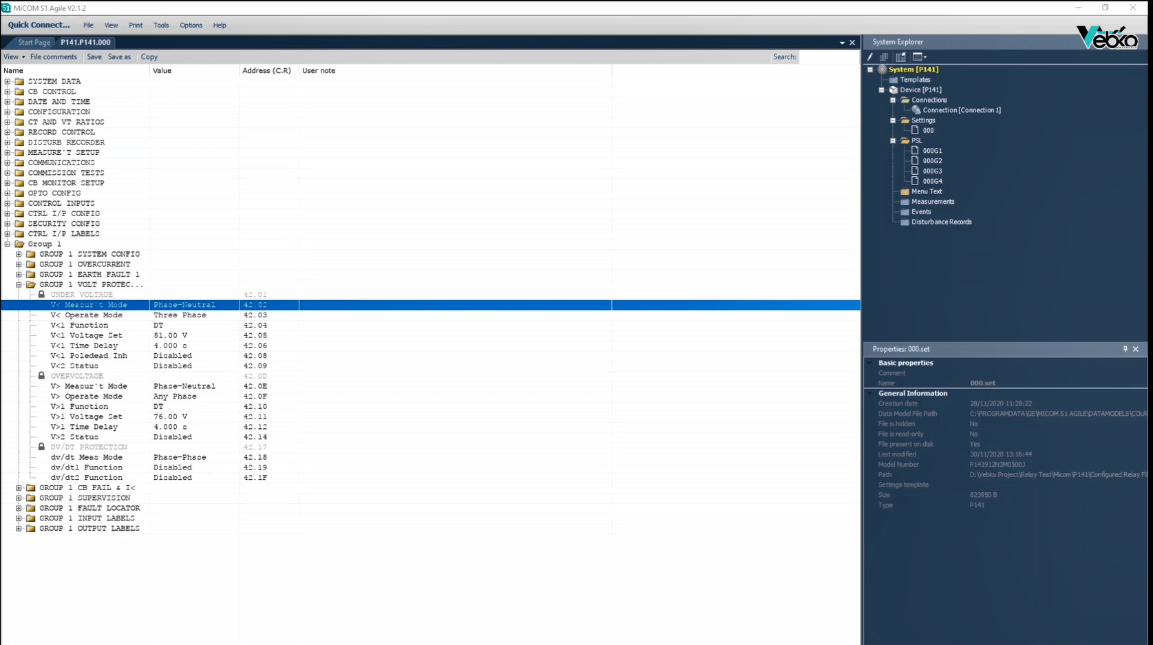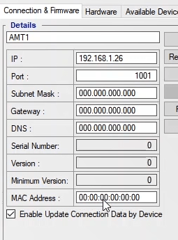 In order to configure this relay, you can use AMR software. The Relay Hardware software module enables relay hardware configuration and Relay VFC module, allowing logic writing and implementation of various functions from easiest to most complex configurations. Also, using the Signal Routing module, functions can be implemented in the fastest way. After adjusting the settings, it is possible to help the relay test more easier through test devices by receiving the Xrio file as an output containing the functions settings. The AMR software can be downloaded from the website of The Vebko Company (Vebko.org). First, the software connects to the relay using the LAN cable and entering the relay IP in the Communication window.