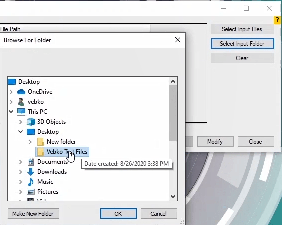 By Selecting the vebko_test folder shown in the path: