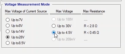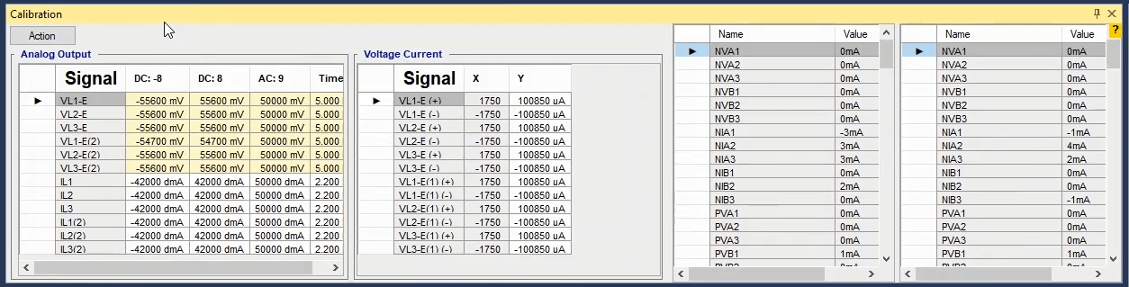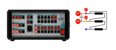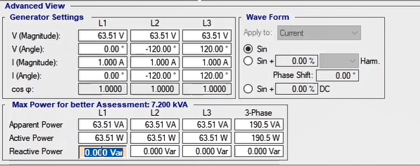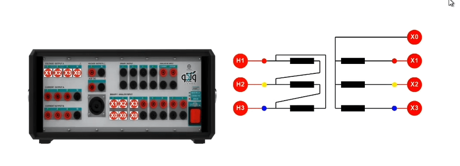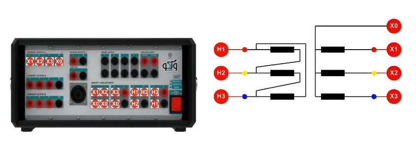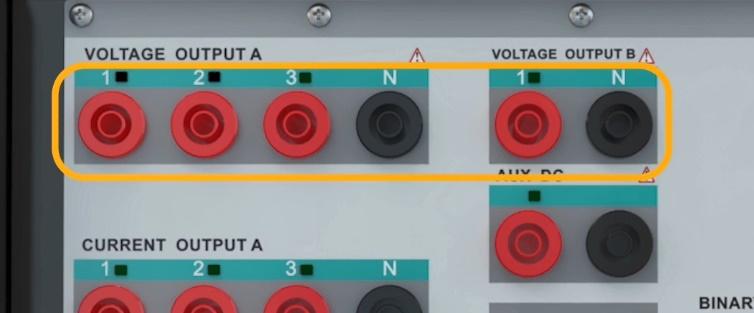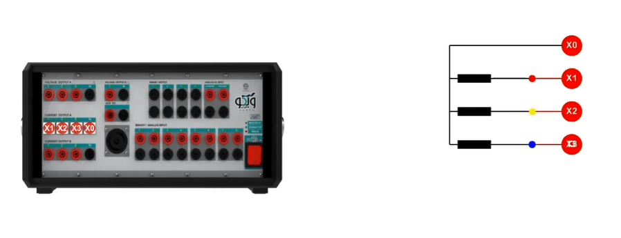 The two voltage groups A and B allow the user to receive up to 150V AC and 212V DC in all four phases simultaneously with a precision of 10mV with a maximum current of 0.4A AC and 0.6A DC as well as up to 2A in transient mode. By changing the wiring, it is possible to receive up to 450V single-phase AC from the device. Also, it is possible to increase the output voltage and provide the user with a 150V AC with a maximum current of 0.8A by changing the wiring and paralleling the two current sources.