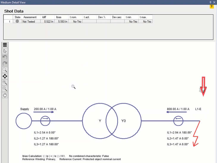As one of the functional tests, you can use pickup drop feature for differential characteristic. The three options Primary Side, -Secondary Side and bias allow pickup drop for differential component on the primary, secondary side as well as bias current, respectively. For this purpose, just add points for different Fault Type and run the test. Here, the drop-off pickup is evaluated for all types on primary and secondary sides.