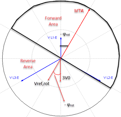 In directional overcurrent relays, In order to better performance of relay, in orientation and reaching the MTA value ,the rotation of the reference voltage angle is used.. The performance area or forward area in this relay is set from -131 degrees to +41 degrees.