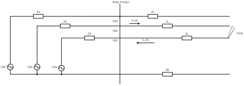 In line angle and so that we cross all zones again, once repetition is performed for each line and for all phase-to-ground characteristics in the C-N and phase-by-phase fault loops in the A-B and ABC fault loops. Finally, at the collision site, a repeat is performed once for each search line for phase-to-ground characteristic in the A-N fault loop and phase to phase in the B-C fault loop.