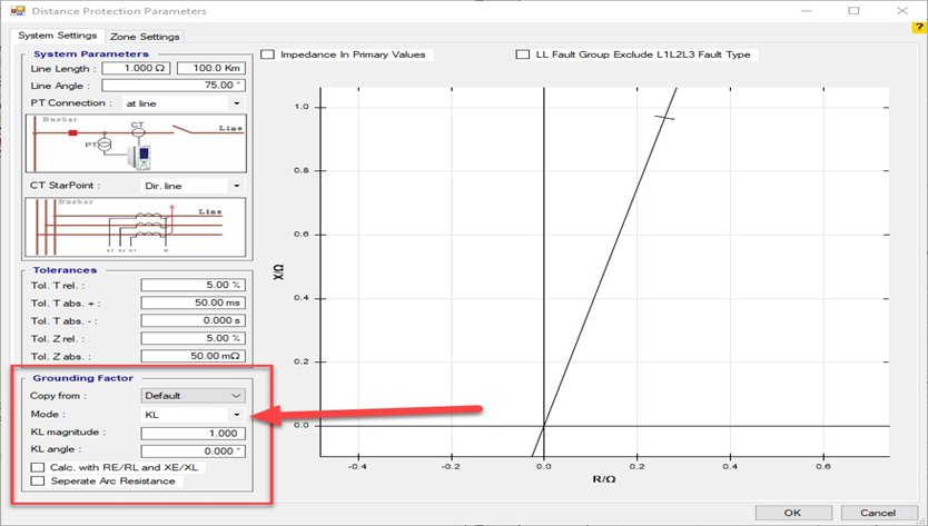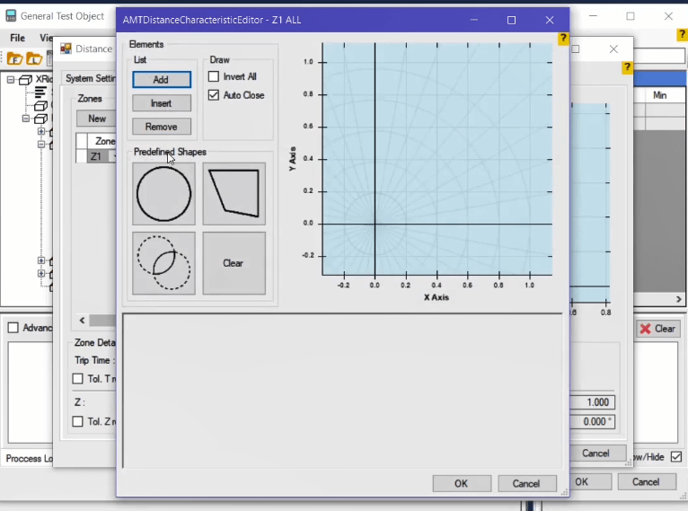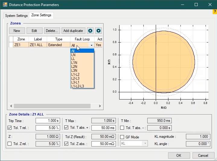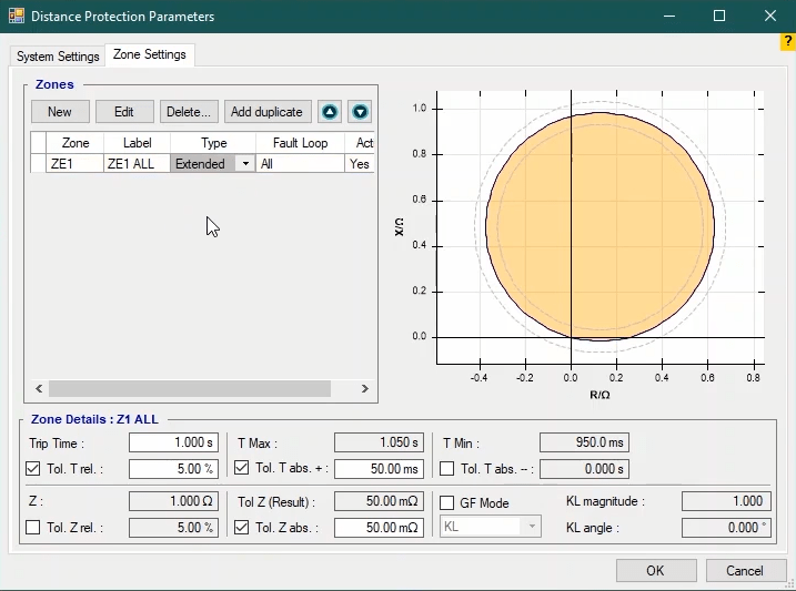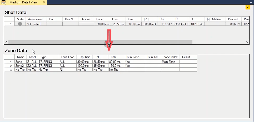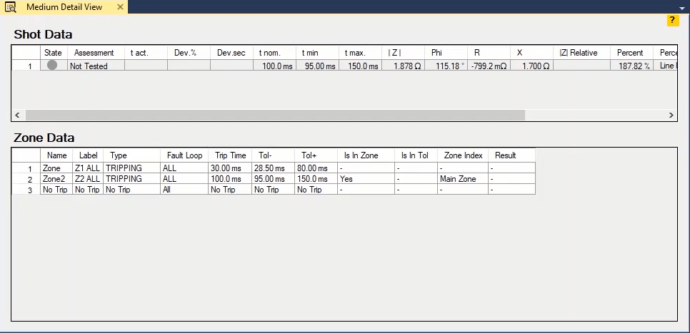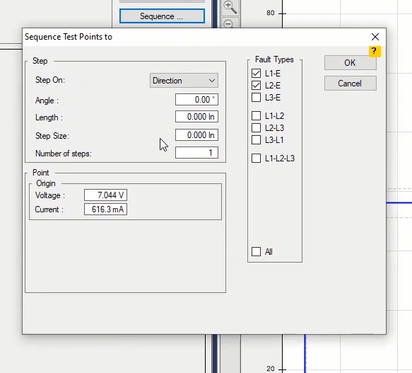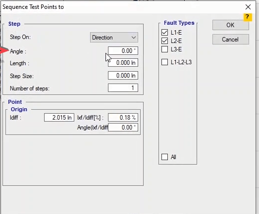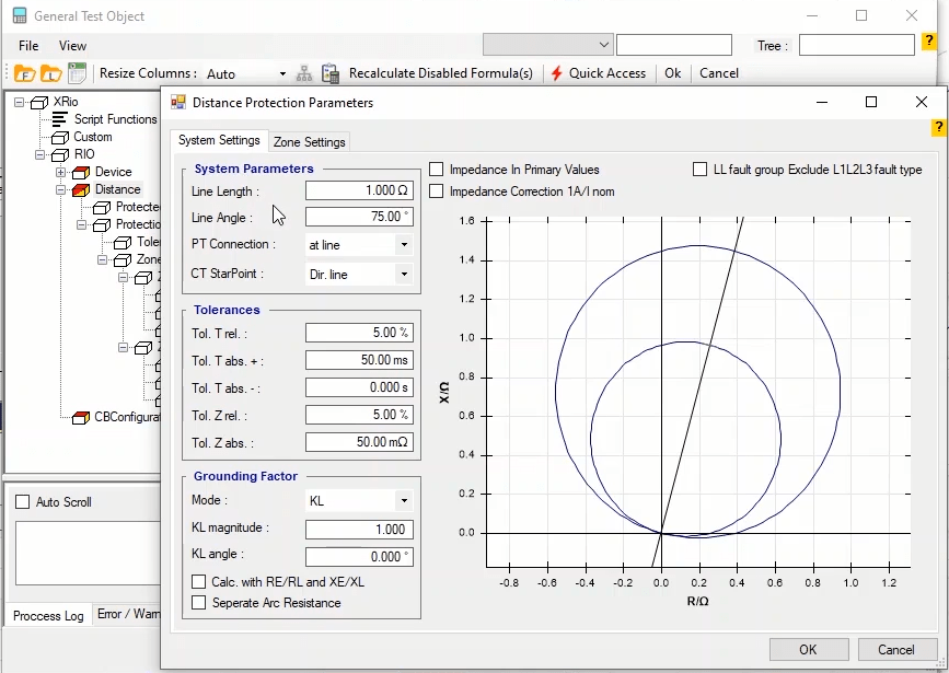 Firstly, shot test is performed, which aims to evaluate the time of different tripe zones. The Pre Fault value is at least 1 second and the Post Fault value is at least 500 milliseconds. In order to perform this test, we place points on 80% of the value of each zone in line with the real axis and also in line with the angle of the line.