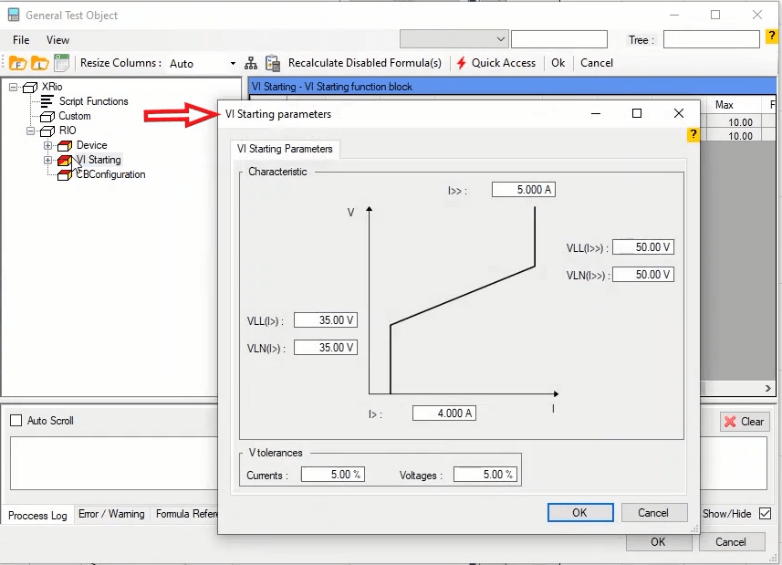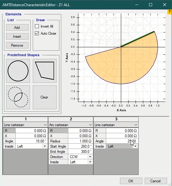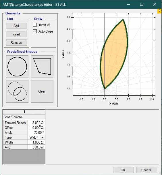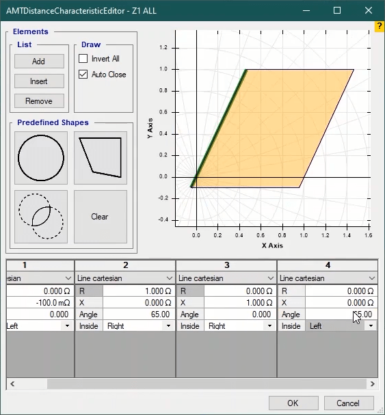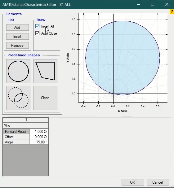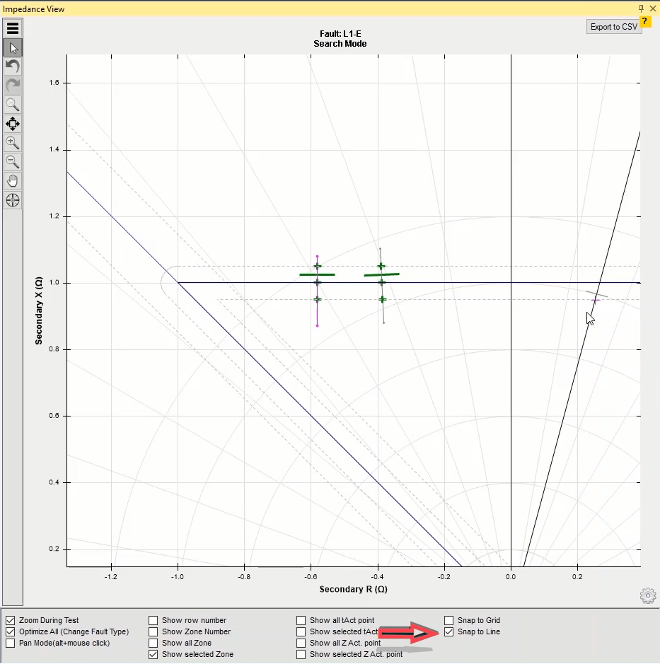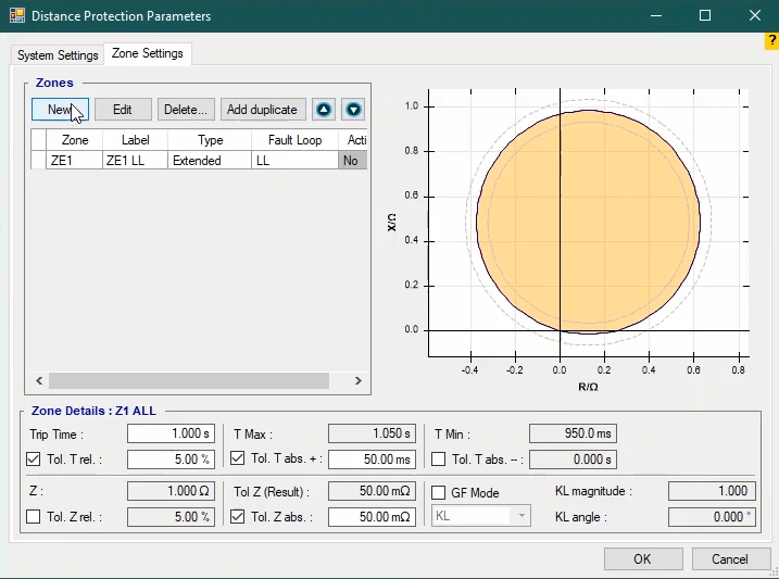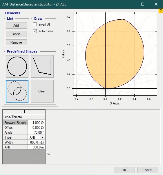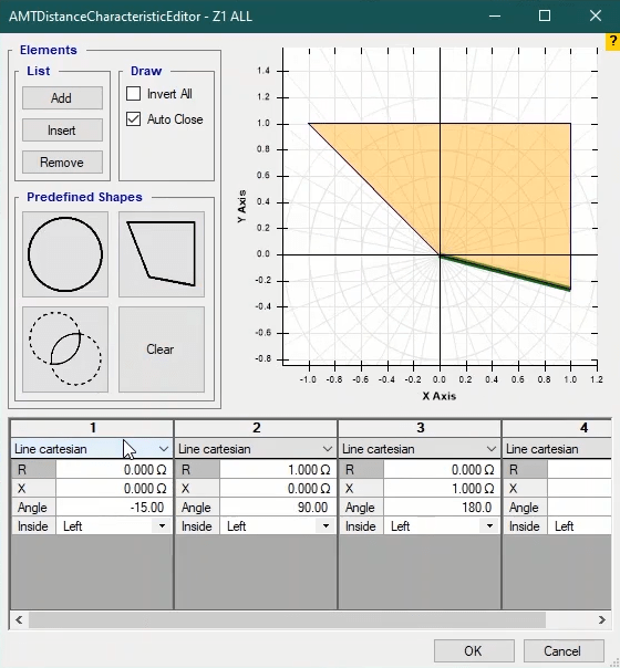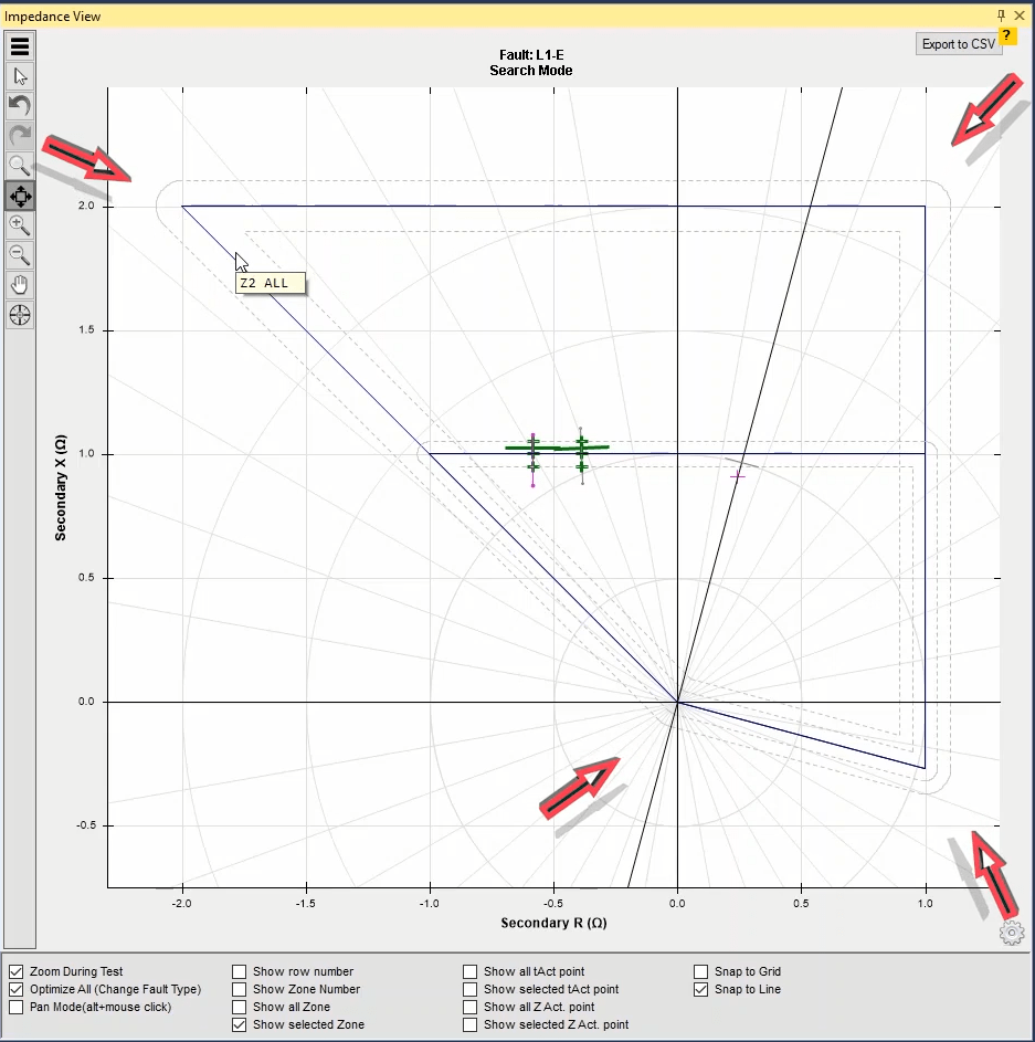 Firstly, shot test is performed, which aims to evaluate the time of different tripe zones. The Pre Fault value is at least 1 second and the Post Fault value is at least 500 milliseconds. In order to perform this test, we place points on 80% of the value of each zone in line with the real axis and also in line with the angle of the line.