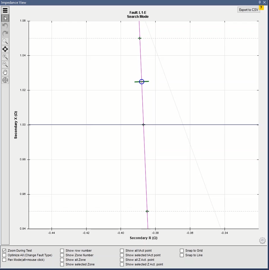 In line with the real axis, the test will be performed for all phase-to-ground characteristics in the A-N and phase-to-phase fault loops in the B-C and ABC fault loops. In line angle, testing is performed for all phase-to-ground characteristics in the C-N and phase-to-phase fault loops in A-B and ABC fault loops. By performing the test, the performance time for the added points can be seen in different zones.