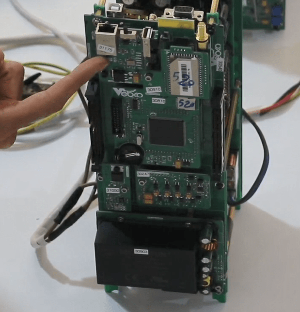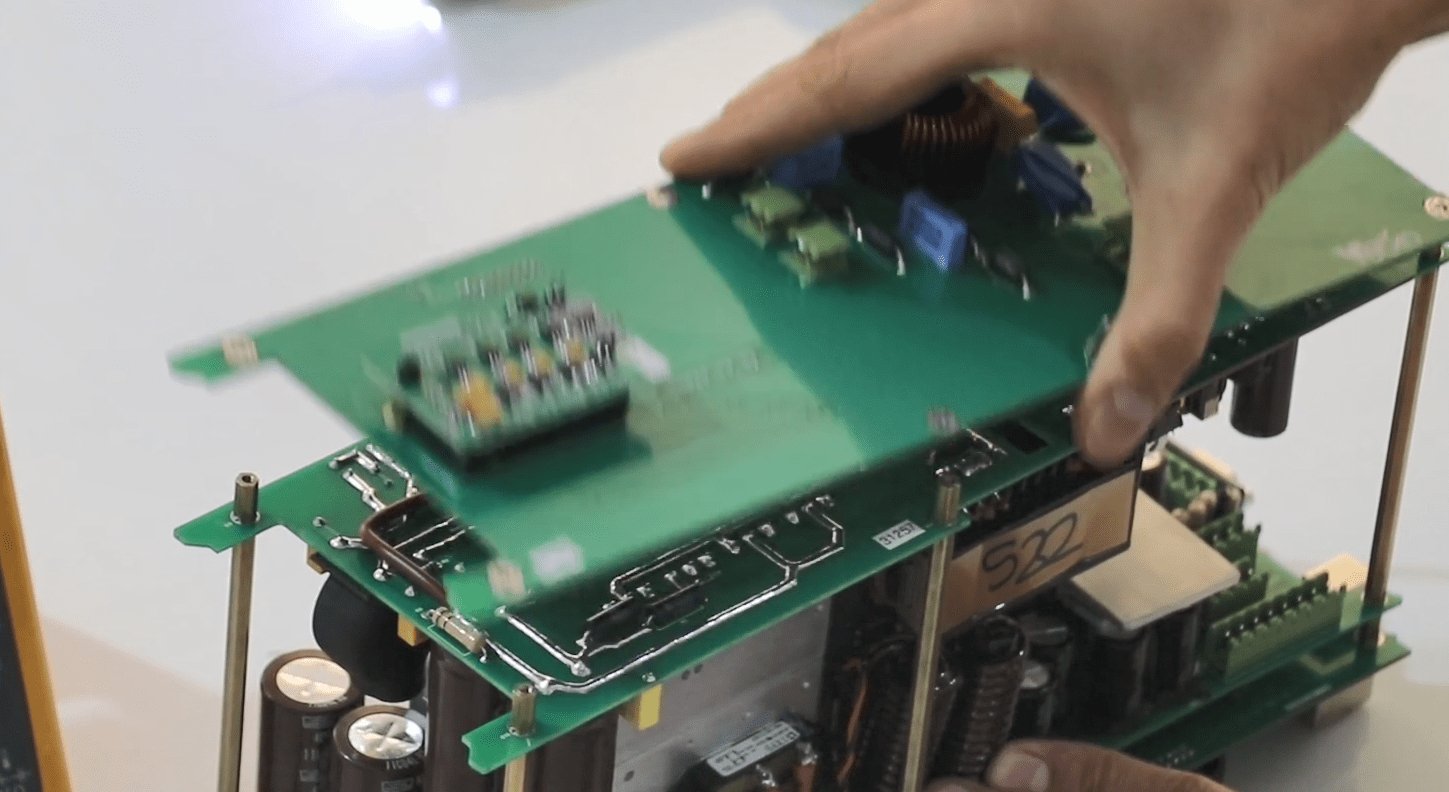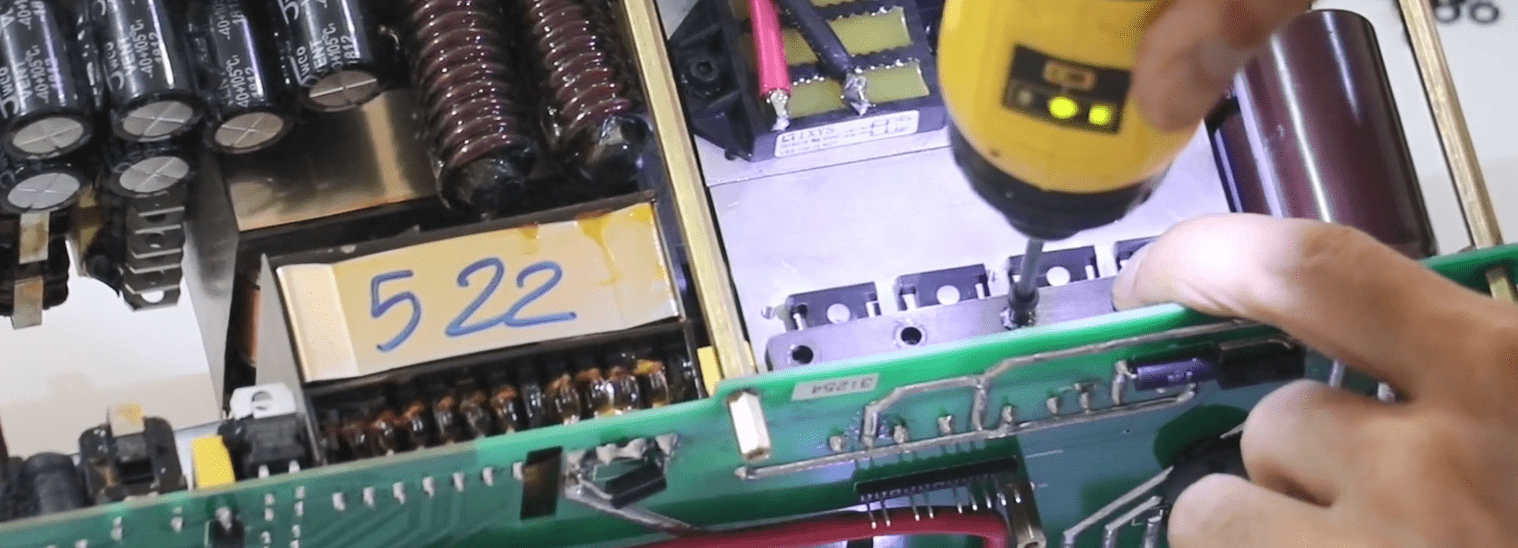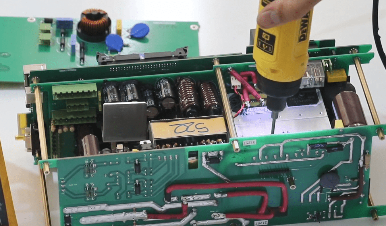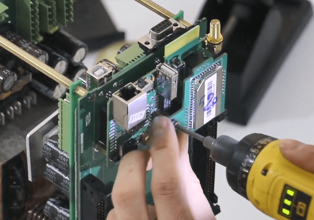 Now open the 14 screws in the front panel then release the green connectors attached to the panel (Phoenix).
