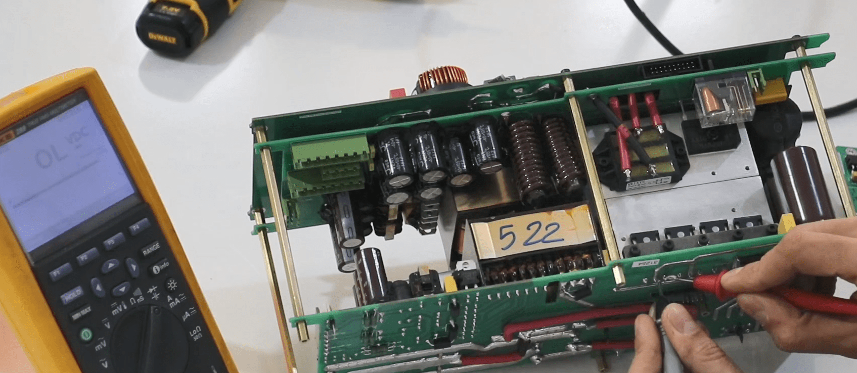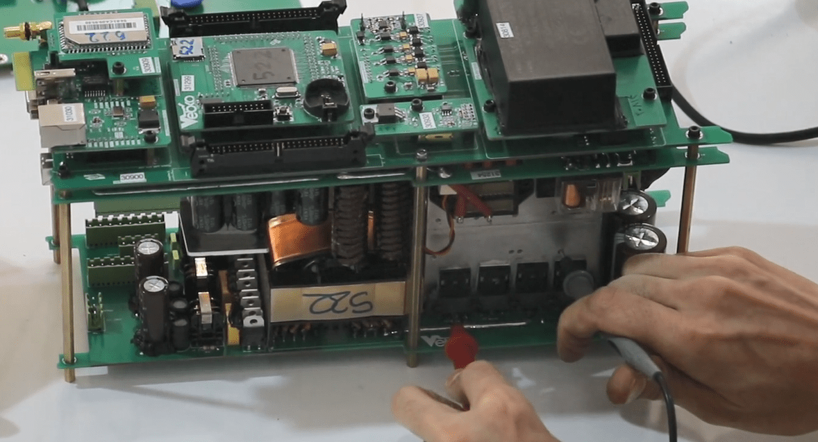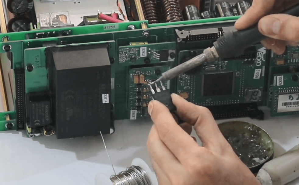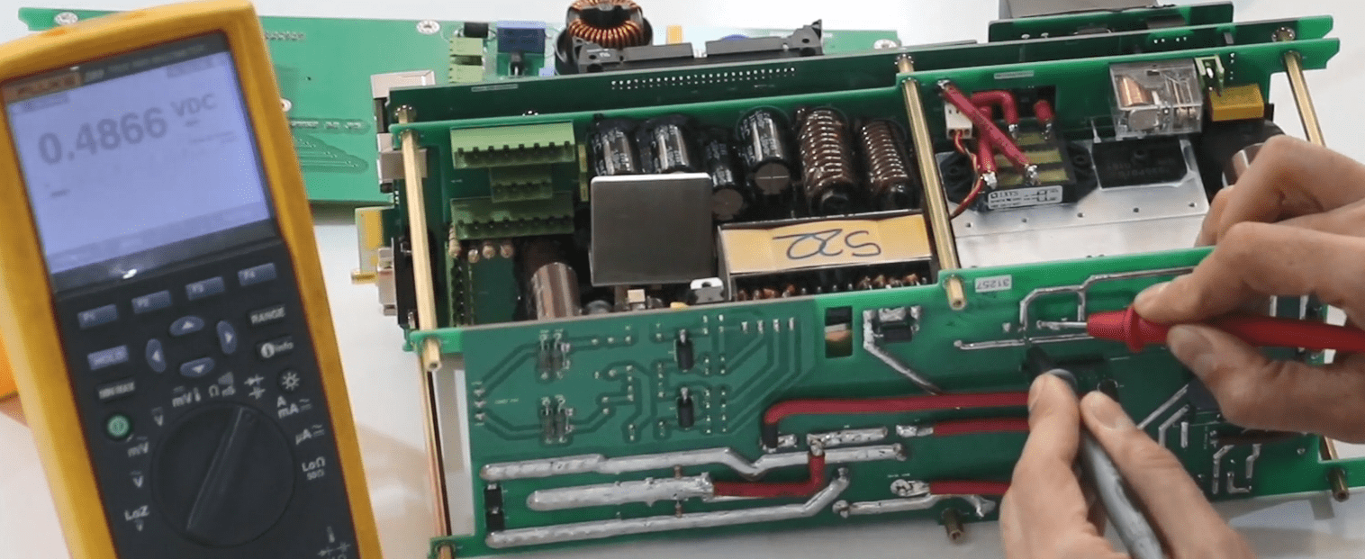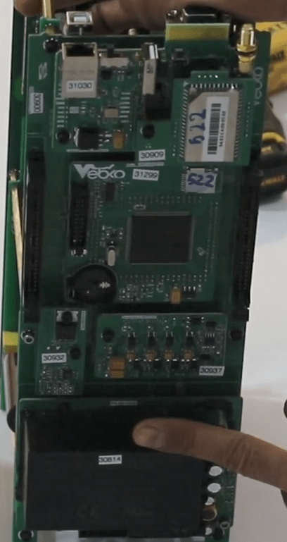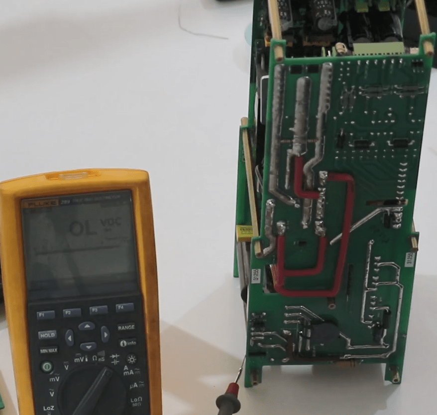 Now open the 14 screws in the front panel then release the green connectors attached to the panel (Phoenix).