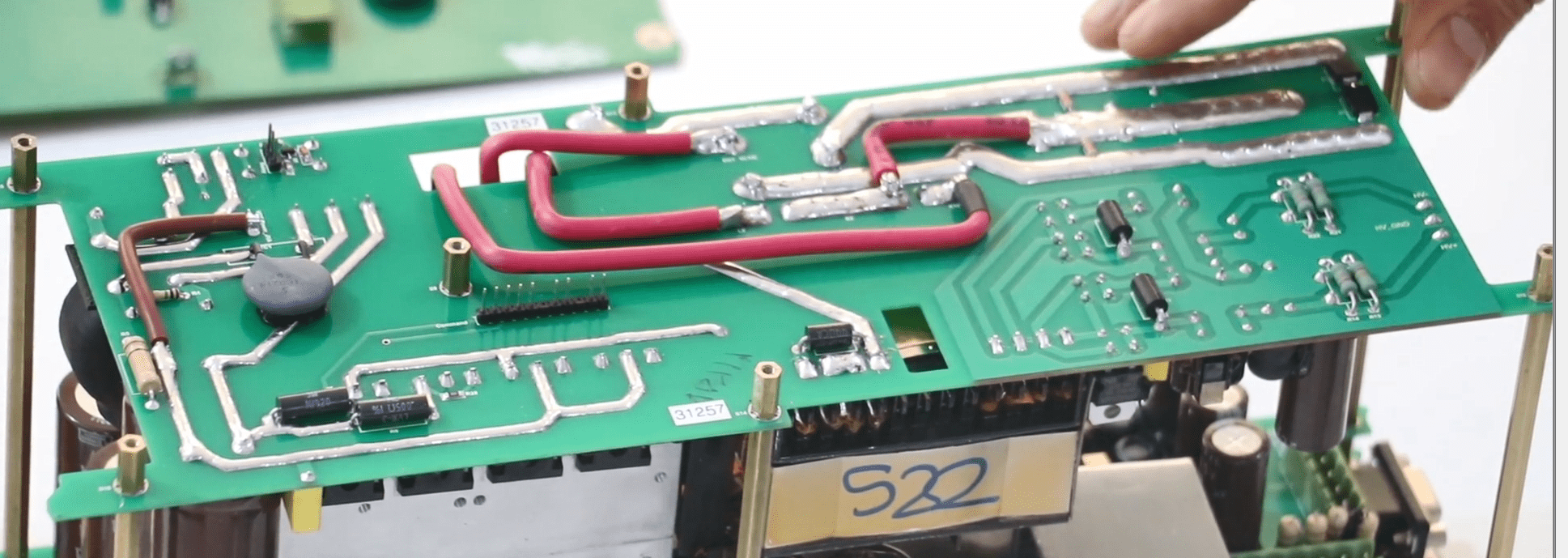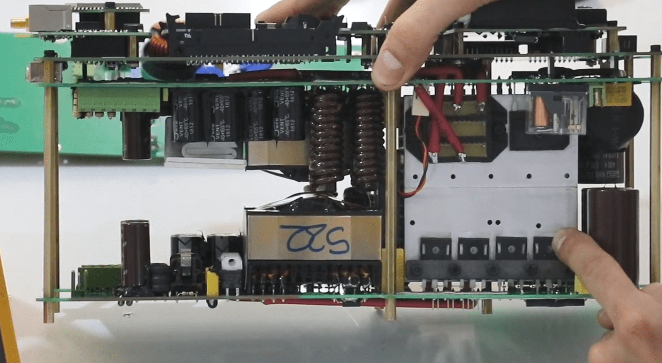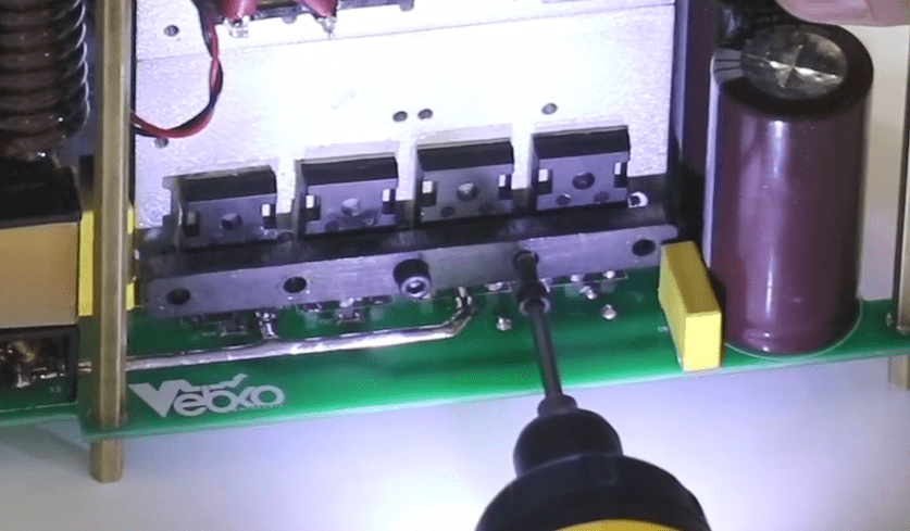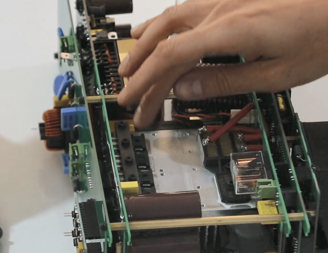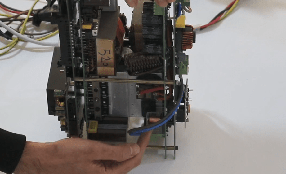 Finally, all the cables and screws are opened; the amplifier and switching module are freed and the fan sockets are released once ejected and easily removed from the case.