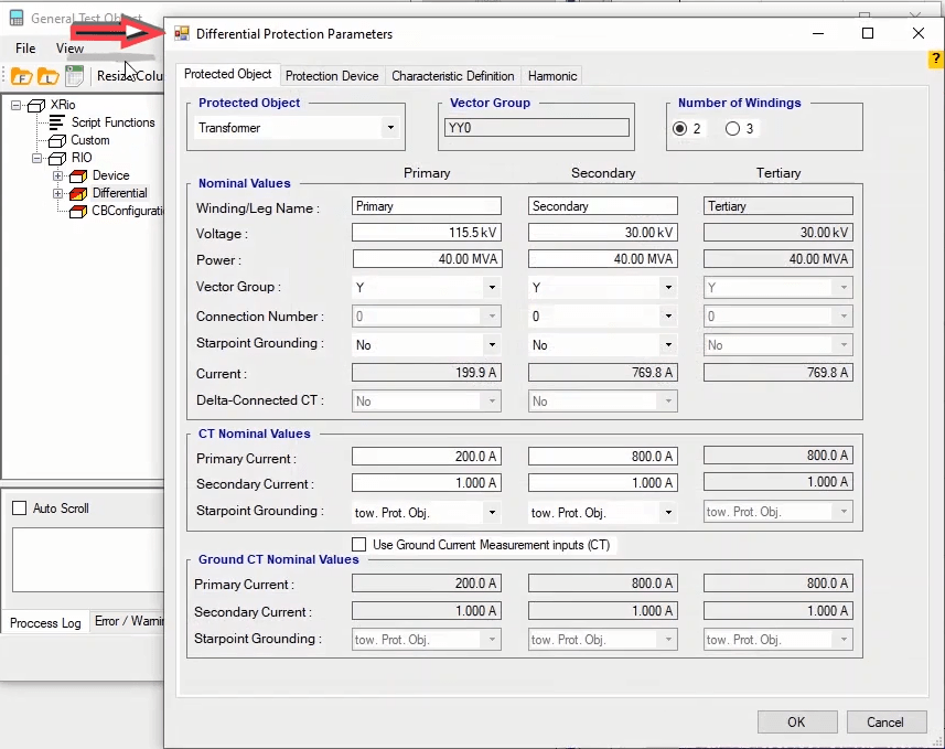 By loading the differential characteristic of the relay, conduct the test based on the periodic testing system of Iran's power transmission network protection systems. Here we select PreFault and Postfault time 500 milliseconds and Fault time 200 milliseconds.