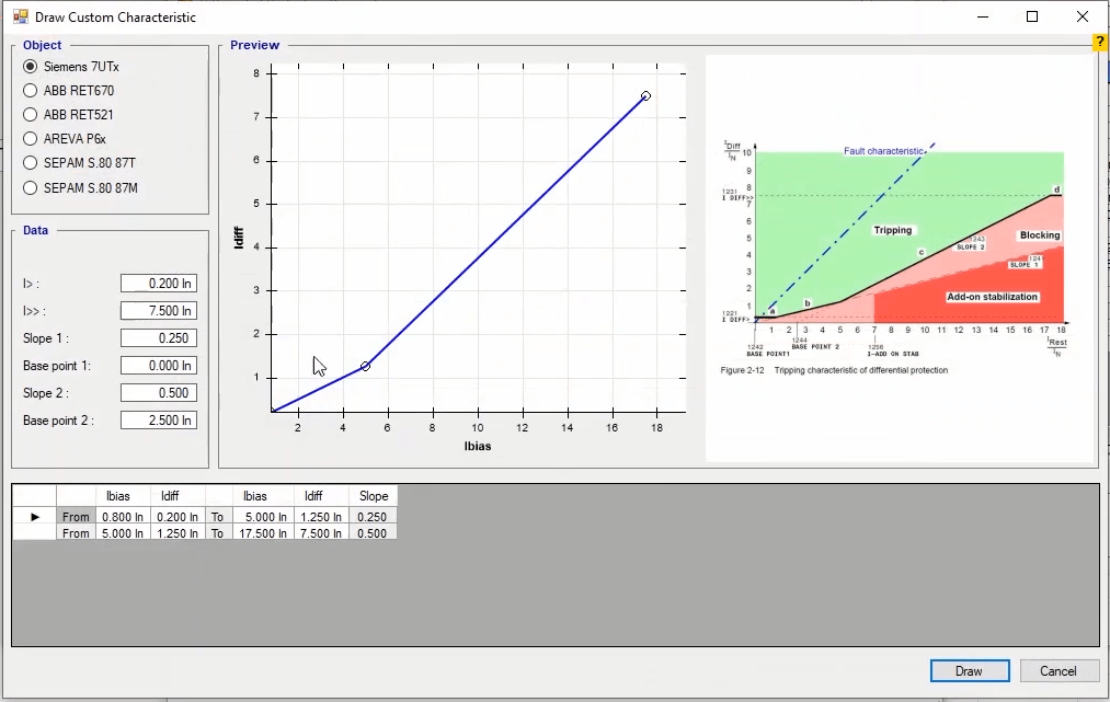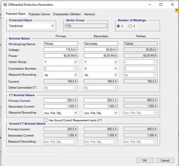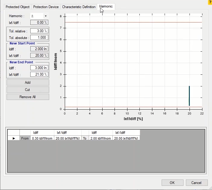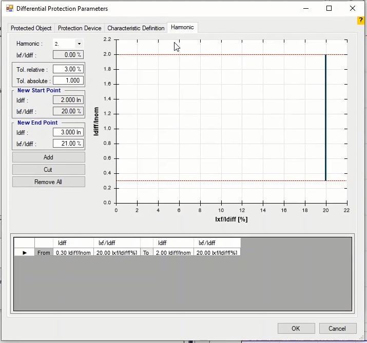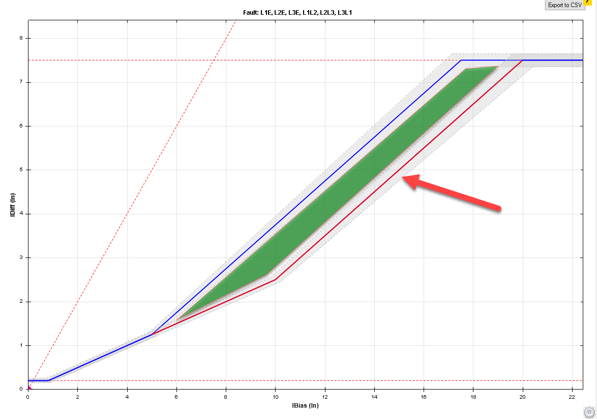 Firstly, points should be selected within blocking and Tripping areas. The relay performance time during testing must match the time set in the differential relay. At each slope of the curve, test points should be established at least in the characteristic breakpoints and outside of the current tolerance and close to it and on either side of the yield curve. In the lower parts of the characteristic, inactivity and in the upper parts of the characteristic, the moment performance must be recorded. In order to avoid prolonging the test time, fault types L1-E, L2-L3 and L1L2L3 are selected.