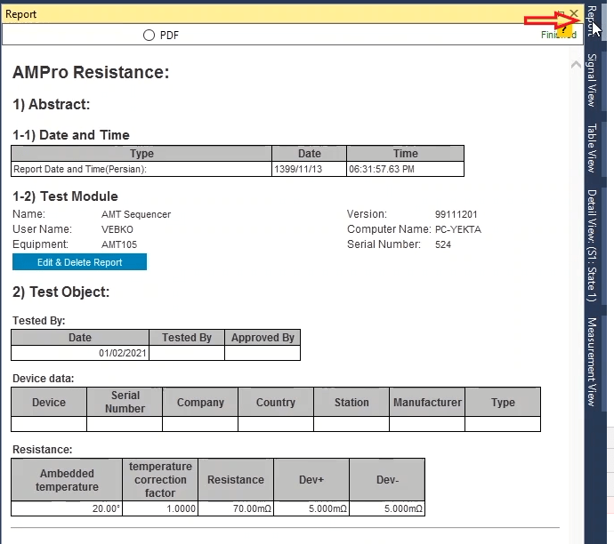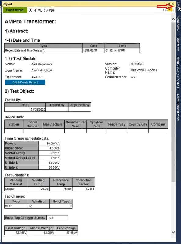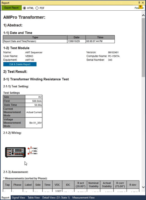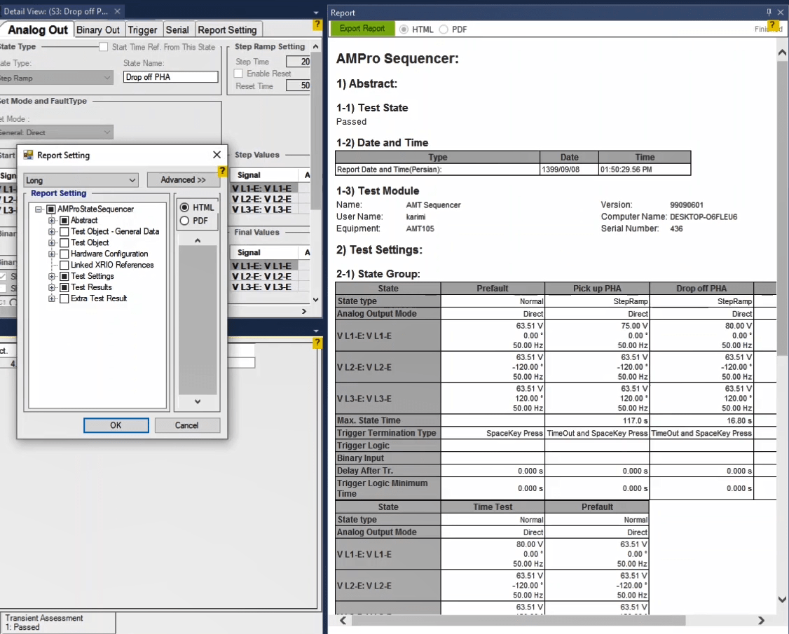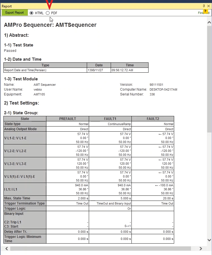 As mentioned above, in order to prevent the prolongation of the test process, these tests are only performed for the ABC fault loop. When the test is finished, you can specify the elements in the report and save the output in different formats such as PDF.