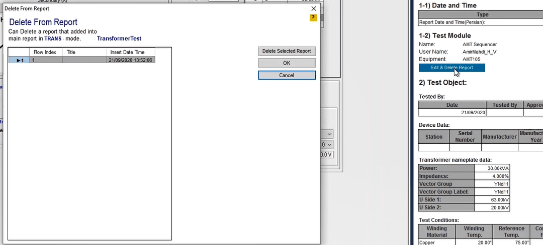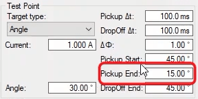 After the current pick up-drop off, it is time to Pick up-drop off on the angle. For this purpose, as mentioned above, the current value is applied twice as much as the regulatory current, and once the trend is performed for the upper limit of the angle, i.e. 41 degrees, and once for the lower limit of the angle, i.e. -131 degrees. By adding the necessary tests and performing, you can finally add favorites items to the report.