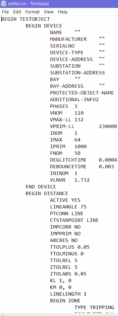 After applying the desired changes, using the Ctrl+ E combination keys or by using the File menu and selecting the Export XRio option, the XRio file is downloaded from the software as an output containing the distance function settings.