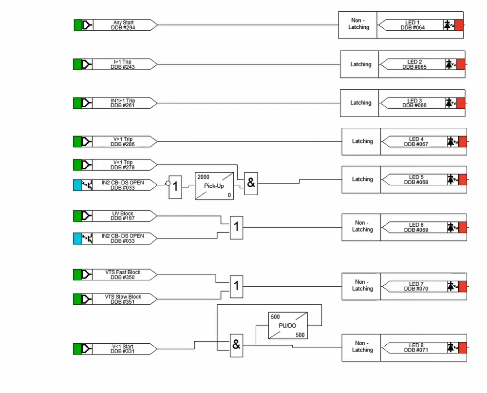 As can be seen in this Temp Function, the signals of analog relay cards are assigned to the inputs of the Distance block, as well as to calculate line-by-line voltages, voltage card signals are given to the Voltage Systems block and then assigned to the Distance Block. Finally, distance output signals are assigned to Binary Outputs and relay LEDs by Output and LED blocks. You can also access the settings of this function by double-clicking on the Distance block.