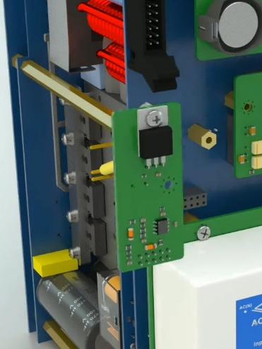 First, turn the device in a way that its socket is to your left and the Neutrik board is placed between the amplifier phoenixes so that its socket is to your right. The socket connects to the complete board of amplifier.