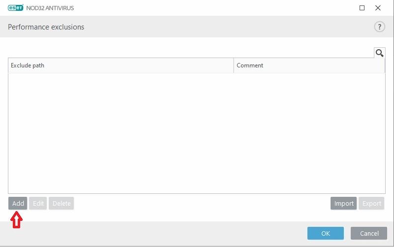 In the Performance exclusions window, click Add option: