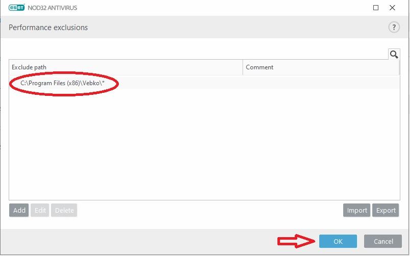 Then specify the path of installing Vebko software on the computer and select the software folder to be trusted: