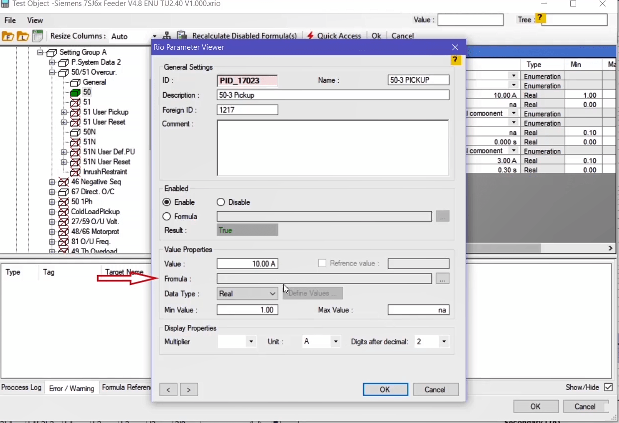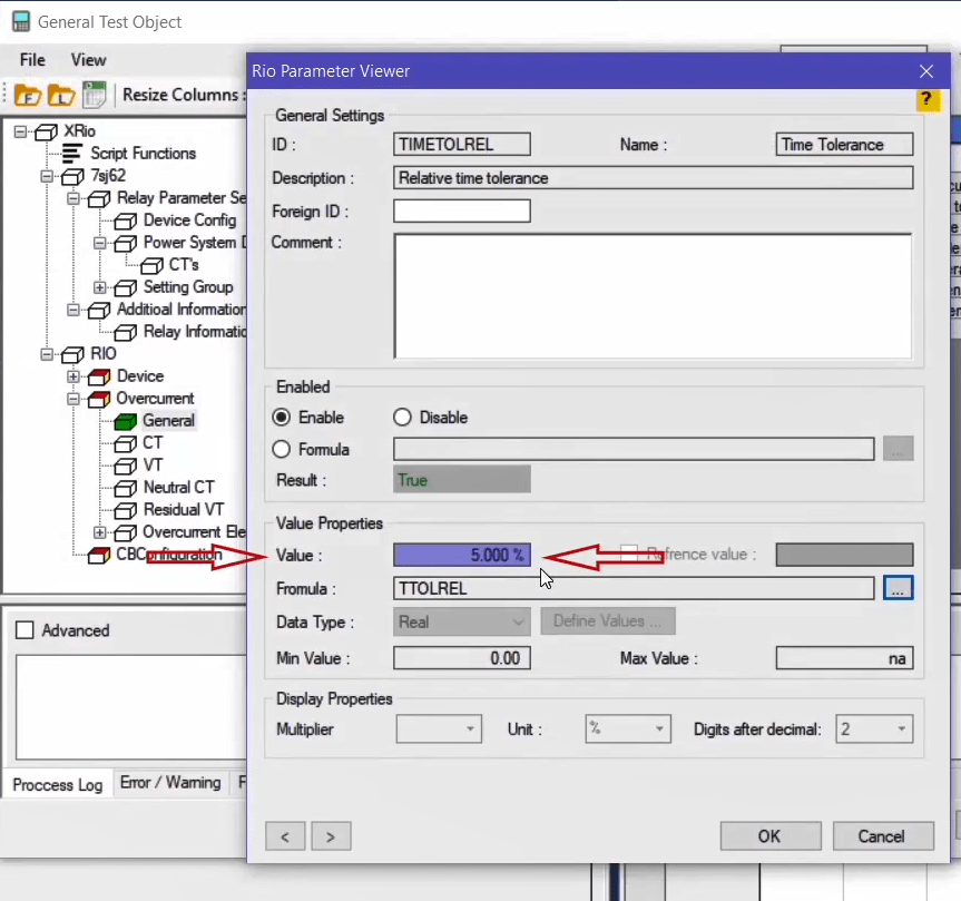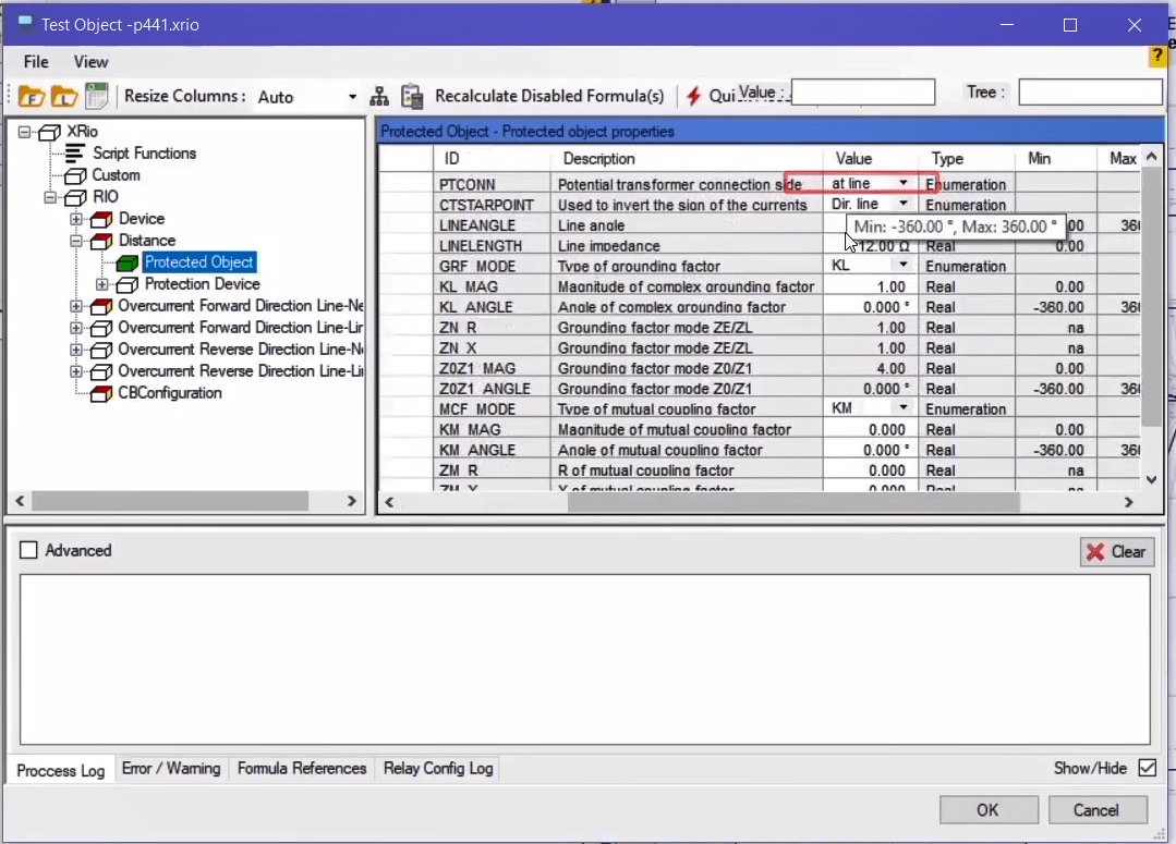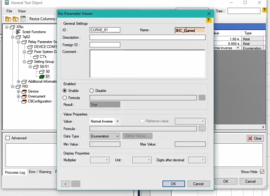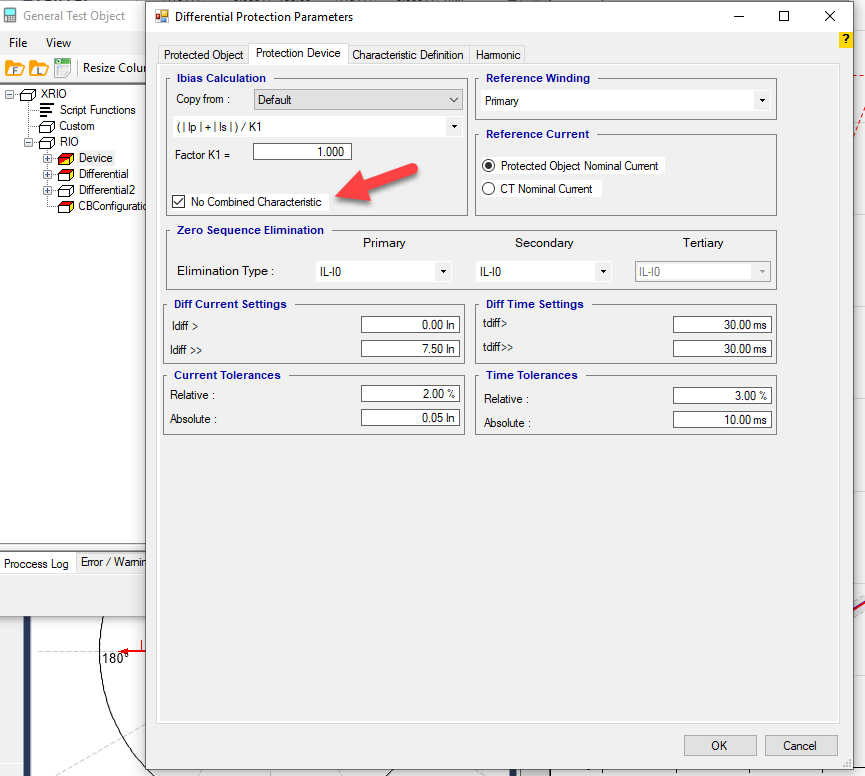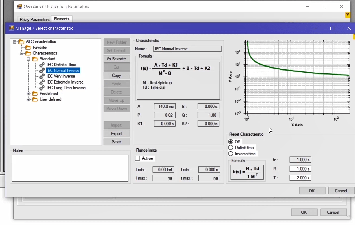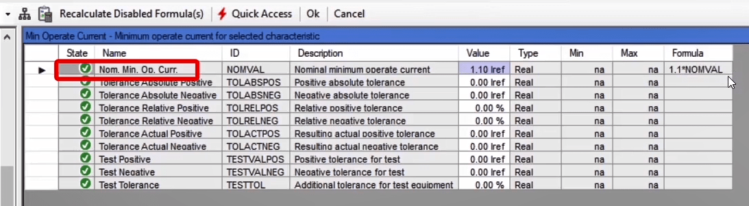 The performance range of overcurrent curves in the AMR relay starts from 1.1 regulatory current in the relay. Therefore, first, by enabling the Active Range Limits option in the Overcurrent Protection Parameters window, the Imin value is set to 1.1 Iref. In the next step, the current adjustment value for the pickup test of the current value is placed on 1.1*1=1.1 amps. This test is performed at the best possible angle in terms of relay performance i.e. -45 degrees.