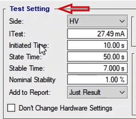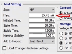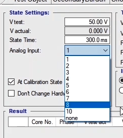 At the “Auxiliary DC” output, a DC voltage as high as 0 to 212V is permanently adjustable. This voltage is independent of the test and can be used to switch on other devices such as relays.