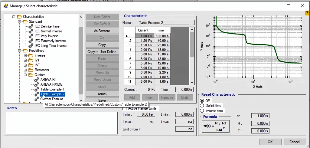 The suggested points for reduced time functions are 1.5 times, 2 times and 4 times the regulatory current, and for constant time curves, 1.5 and 2 times the regulatory current. These points are added to the fault type 12 to prepare the test. Keep in mind that due to the existence of three different characteristic, in some cases, the added points with the mentioned coefficients fall on the other characteristic. In these cases, other points are manually added on each characteristicto ensure accurate time performance.