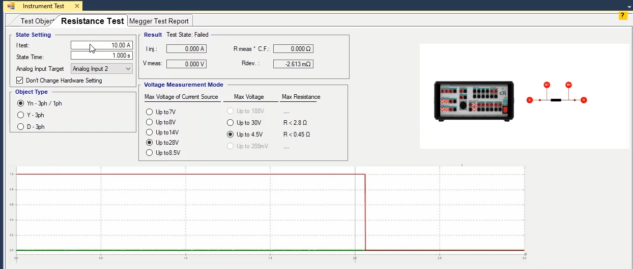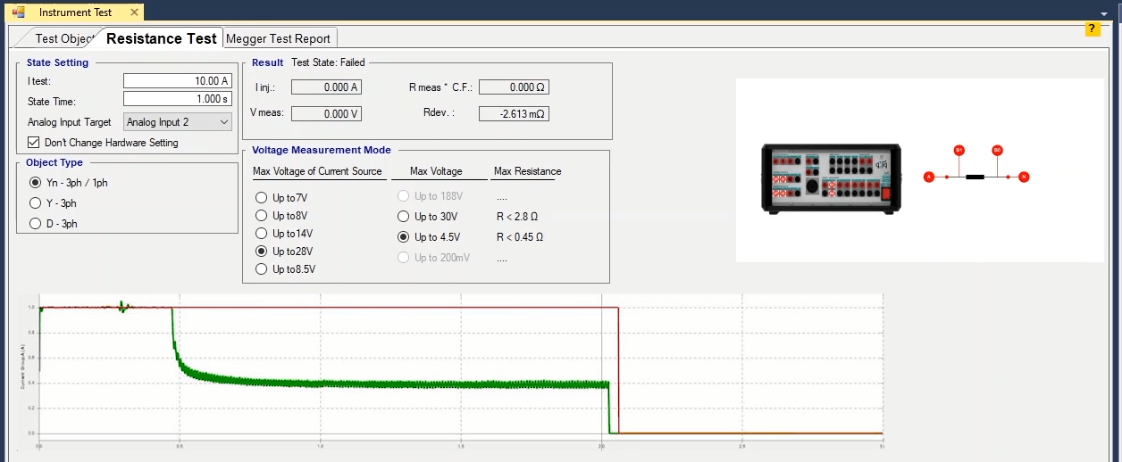 In order to test the DOC function, three states are considered. The first state for 500 milliseconds, normal conditions this means that it will inject a nominal voltage with zero current.