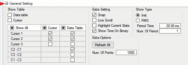 The analog inputs of the device are capable of receiving both analog and digital signals. All 8 inputs can be active simultaneously. Other than reading them, these inputs can show the waveform of voltage in three voltage levels of 4.5, 30 and 188V with the precision of 1, 3 and 10mV.