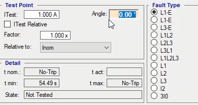 In order to investigate the directional overcurrent function, in addition to the time of operation and current, the angle of performance should also be investigated. For this purpose, performance time tests are performed along with amplitude and phase tests.