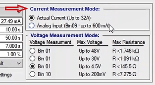 The “Analog DC Input” section is capable of measuring voltages up to 200mV with a precision of 50µV and current up to 500mA with a precision of 50µA.