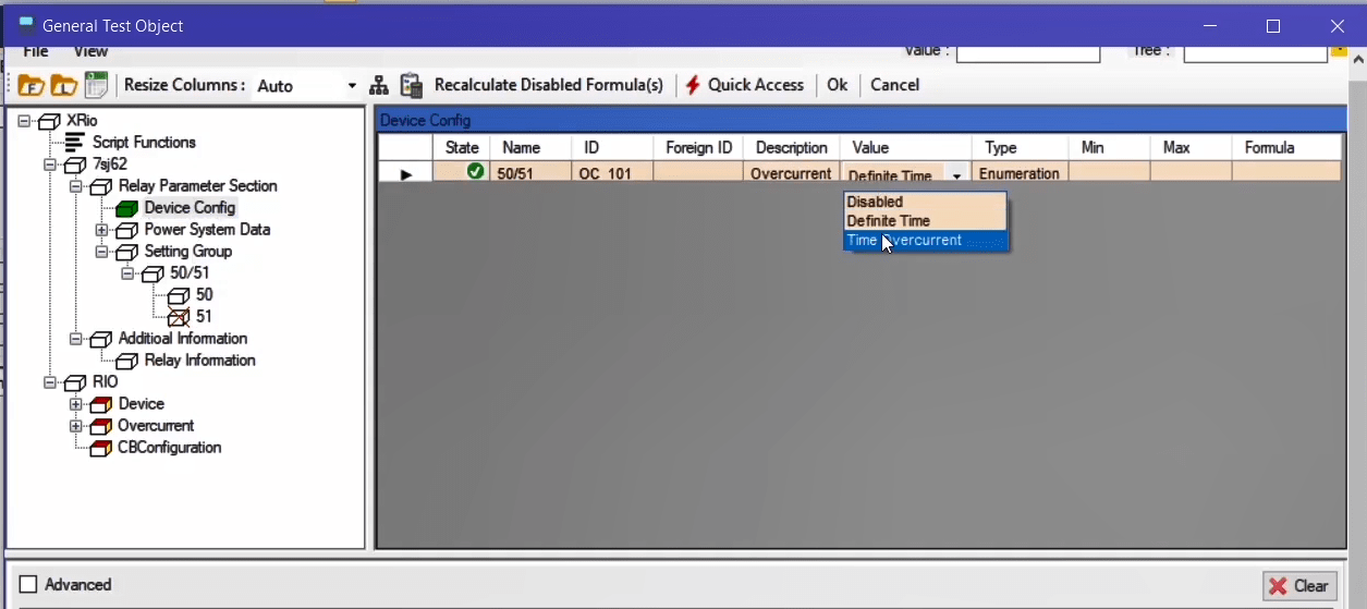 By making these changes, simply select Send Config and Setting to Relay from the Device menu again. This way, the settings and applied configuration are moved to the relay. (Cut from this part until the overcurrent room opens).